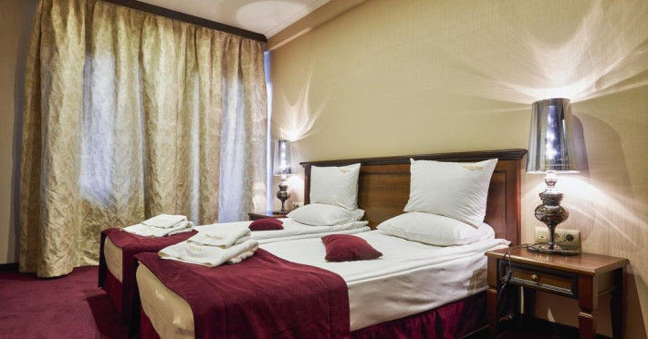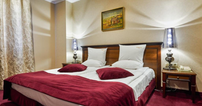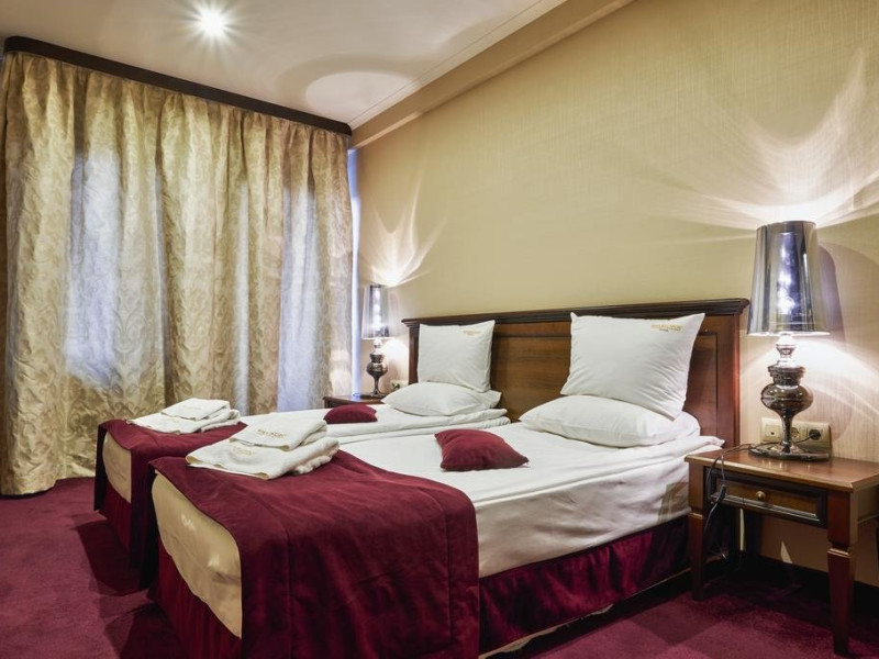 Hotelul de patru stele Grand Hotel 'Yantra' din Veliko Tarnovo - capitala culturala a Balcanilor - este o parte a lantului bulgar 'Sharlopov Group' .Cladirea hotelului este un monument cultural si are o locatie unica - in inima vechiului Tarnovograd, sub Samovodska charshia, cu vederi panoramice spre Universitatea din Veliko Tarnovo, rezervatie arhitecturala Arbanasi, cetatea Tsarevets si dealul istoric Trapezitsa, inconjurate de curbele pitoresti al raului Yantra. O dat pe an langa hotelului trece legendarul tren Orient Express. Grand Hotel 'Yantra' este deschis tot anul si ofer oportunitLLi excelente pentru relaxare, excursii cognitive, culturale si istorice, intalniri de afaceri, seminarii si team building-uri, evenimente corporate si sarbatori de familie. Cultura, frumusete si SPA - Toate acestea pot fi gsite in Grand Hotel 'Yantra' - Casa dumneavoastra departe de casa. Avantajele grand Grand Hotel 'Yantra': Restaurant unic 'Yantra' cu vedere panoramica spre cetatea Tsarevets si SHO W audio-vizual unic 'Sunet si lumina ', cu un program muzical bogat Cafenea vieneza cu patiserii tentante de la propriul laborator de patiserie SPA confortabil si centru de wellness care ofer o varietate de terapii de relaxare, si proceduri faciale si corporale cu produse cosmetice de inalt calitate Deservire excelenta.