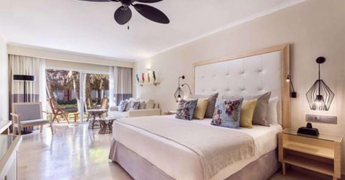 This hotel consisting of 10 2-storey buildings, comprises 364 rooms, all of them air conditioned. Facilities infclude bars and restaurants with non-smoking area in addition to a cadino, a discotheque and a car park for those arriving at the hotel by car.## LocationThis luxurious hotel is situated directly on the beachfront of Playa Bávaro and is surrounded by tropical and coconut trees. The fine, white sand beach is protected by a coral reef and thus offers the ideal site for those wishing to try a spot of diving as well as many other water sports.## RoomsThe rooms have a Caribbean style decoration and comes with a king size bed or 2 queen size beds. Rooms feature a fully equipped bathroom with shower, hydromassage bathtub, hairdryer and bathroom amenities, minibar refilled daily, air conditioning thermostat, telephone with direct line, safe deposit box, ceiling fan, cable TV with internal pay-per-view channel with movies and video games, tea and coffee making facilities, iron and ironing board, desk with lamp and balcony or terrace with table and chairs.## SportIt is possible to enjoy the four swimming pools of the complex, as well as the complete daily nightly entertainment program with show games, activities around the pool area and the beach, as well as many sports facilities. Children mini club with daily program activities and entertainment according to ages. A totally equipped Spa with gym and beatuy salon is also avilable.## MealsInternational buffet is offered for breakfast, lunch and dinner. For dinner guests can also enjoy the service of the specialties restaurants serving Spanish, Asian, Italian, International and Mexican cuisine and featuring a la carte service.## PaymentVisa and Master Card are accepted credit cards.Hotel: 24 Hour Reception · Bar · Cafe/Snack Bar · Children's Club · Currency Exchange · Evening Entertainment · Games Room · Gym · Hair Salon · Laundry Service · Massage · mini market · Parking · Play Area · Pool Bar · Restaurant · Sauna · Separate Children's pool · steam bath /turkish bath · Swimming Pool · TV roomRoom: Air Conditioning Room · Bath · Bath/Shower · Hairdryer · Internet Access · Iron/trouser press · Mini bar · Safe · Satellite TV · Shower · Tea /Coffee making facilities · Telephone