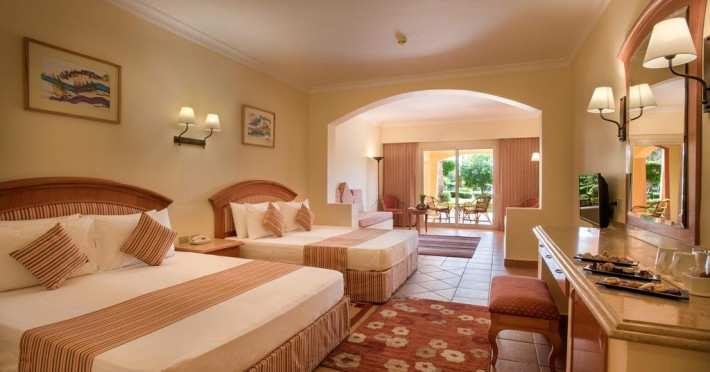 Localizare: Acest resort de 5 stele este localizat pe tarmul Marii Rosii, la doar 9 km de aeroportul international Sharm El Sheikh. Dotari camere: Hotelul pune la dispozitie peste 400 de camere, oferind o experienta placuta pe toata durata sederii; aer conditionat, minifrigider, seif, tv, aparat de cafea sau ceai, uscator de par. Facilitati: Hotelul are un restaurant care serveste mesele principale tip bufet si inca 4 restaurante; 5 baruri; sala de conferinte; piscina; centru wellness & spa; miniclub pentru copii cu piscina si loc de joaca; sporturi de apa; teren de tenis, teren de volei, billiard, echitatie, sala de fitness; ATM; parcare; biblioteca; shuttle bus; salon de infrumusetare; servicii de curatatorie; servicii medicale; serviciu de inchiriere masini; internet.