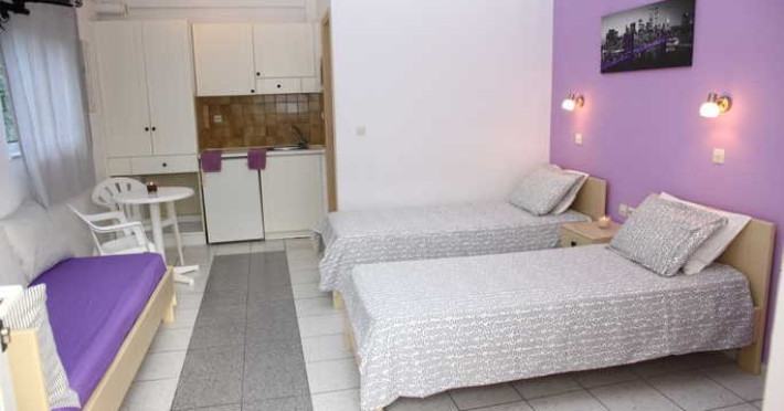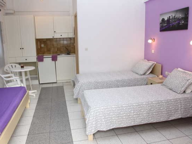 Descriere: Este un hotel cu un bun raport calitate/pret, o varianta economica de a petrece un sejur in insula Creta. Nu este recomandat persoanelor cu probleme locomotorii. Tip masa: self catering si optional mic dejun sau demipensiune