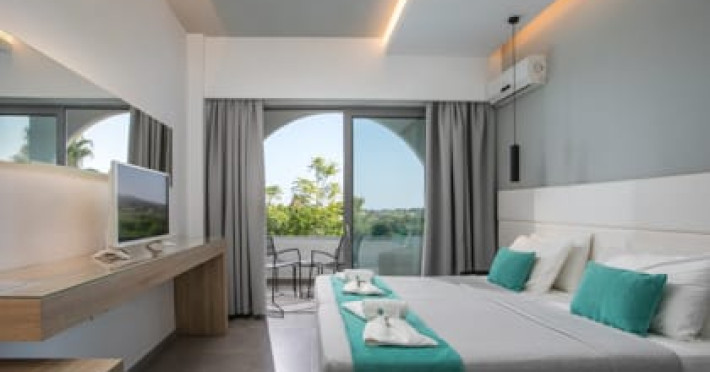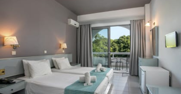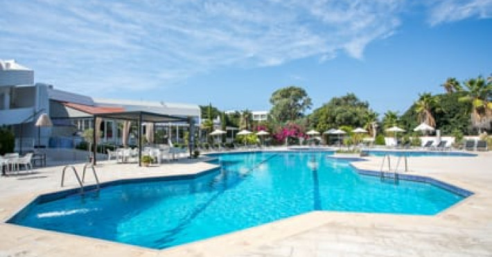 Happy Days Hotel is located in the area of Tholos in Theologos, just 200 meters away from the beach which is an ideal location for kite surfing and other sea sports. In addition there are quiet and peaceful gravel/sand beaches 200 meters away. Happy Days Hotel makes your stay more comfortable featuring a reception that operates 24/7, a lobby, a restaurant/dining area, a bar, a fresh water swimming pool, sunbeds provided around the pool, many comfortable sitting areas and much more. Areas and conveniences around Happy Days Hotel: airport RHO (7 km), Lindos (70 km), Buttuerfly Valley (8 km), Old Town (20 km) and Kamiros Scala (8 km). The hotel is within easy reach of supermarkets, tourist information, bus stops, bars and restaurants. Finally, our hotel provides free parking space for its guests.