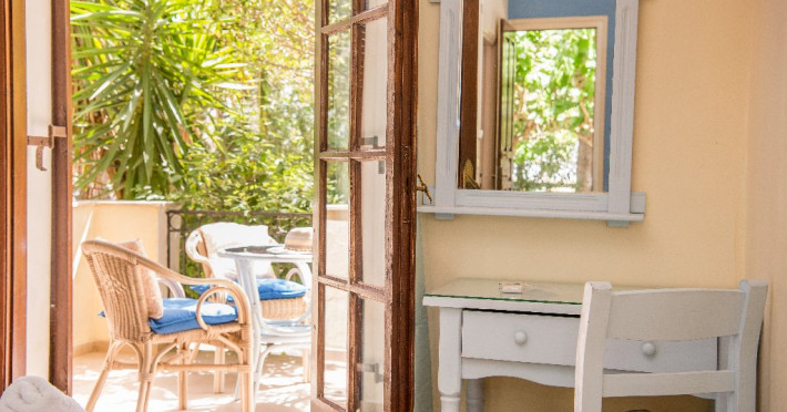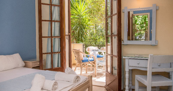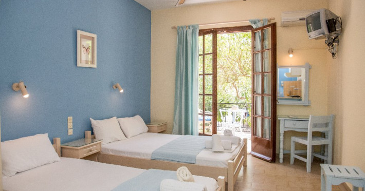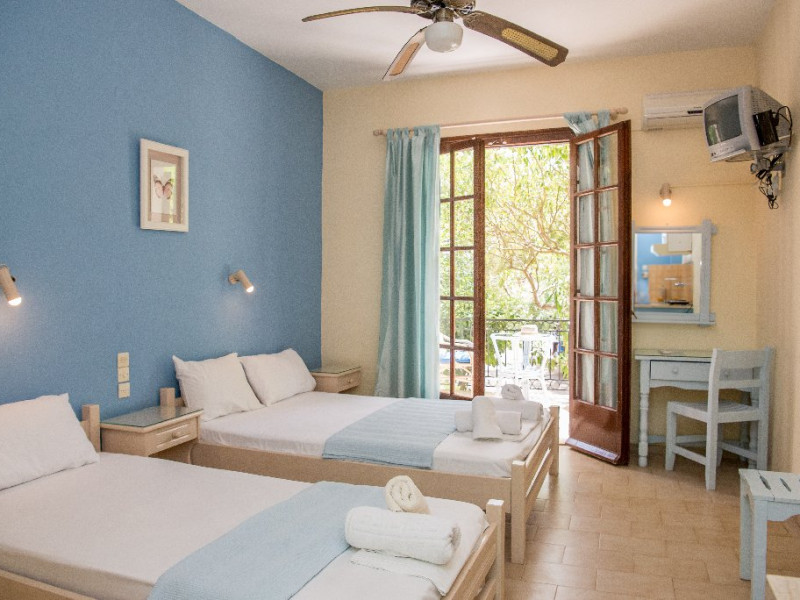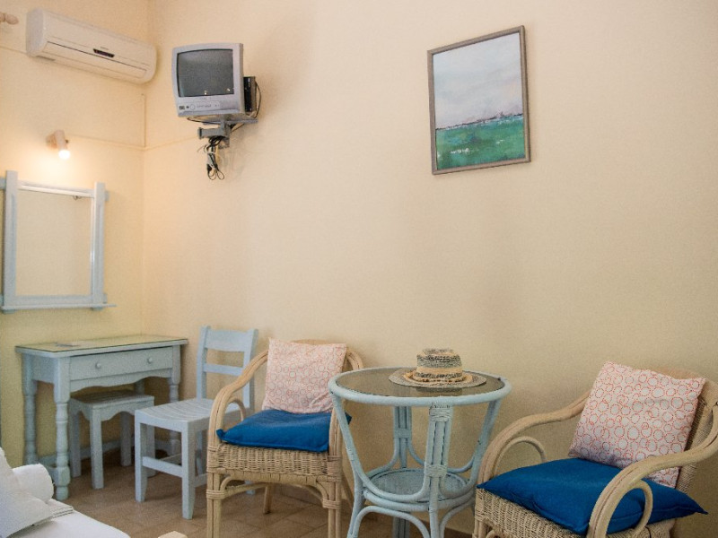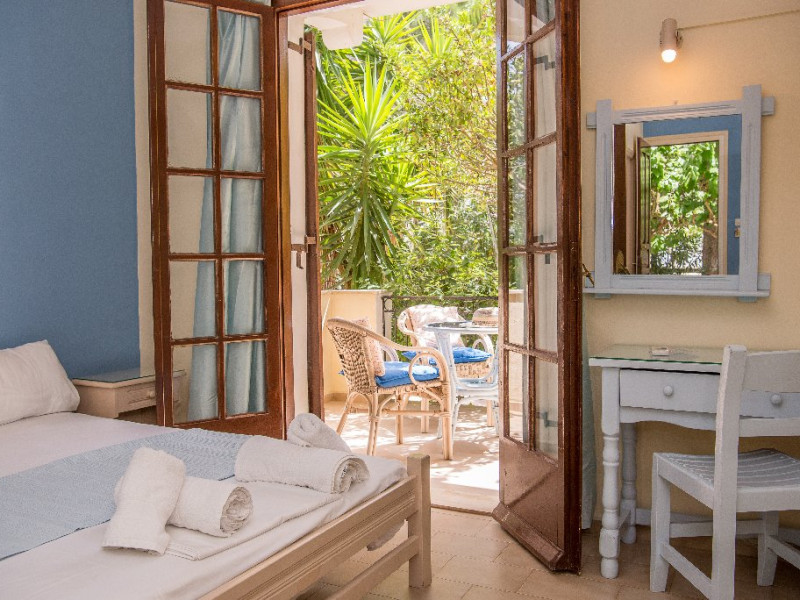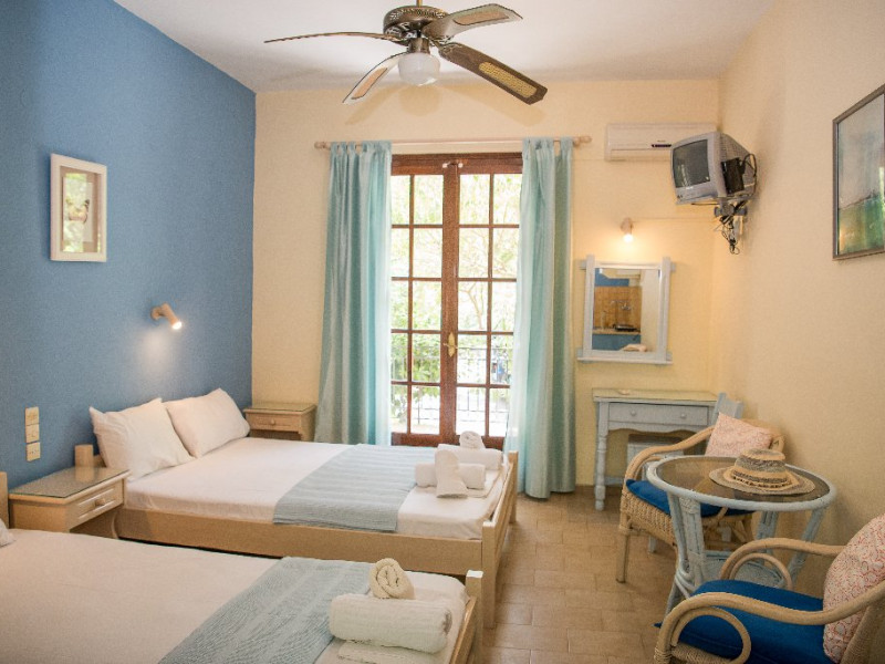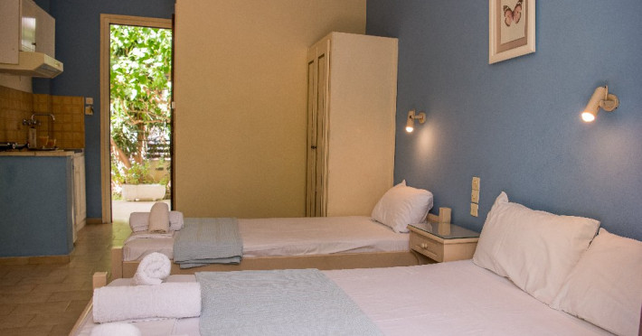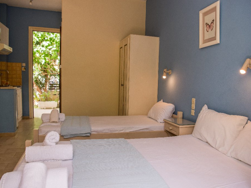 Descriere: Cazarea este compusa din 10 studiouri in sistem self-catering pentru 1 pana la 3 persoane. Toate au o chicineta complet utilat, o baie privata si un balcon sau o terasa mobilata Localizare: Hara Studios este un mic complex de apartamente care ofera cazare intr-un loc linistit in centrul orasului Laganas, la doar 100 m de plaja si la aproximativ 5 km de aeroportul din Zakynthos.