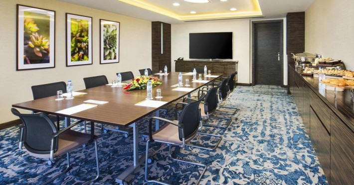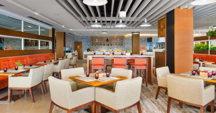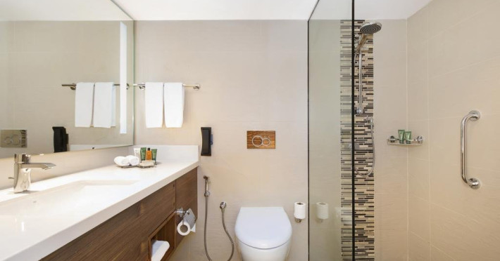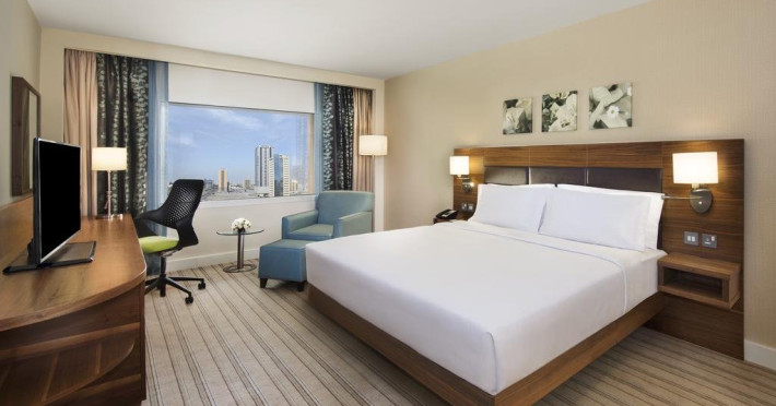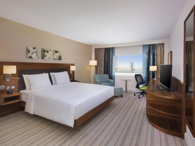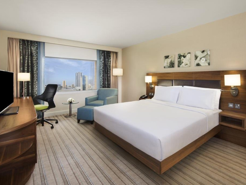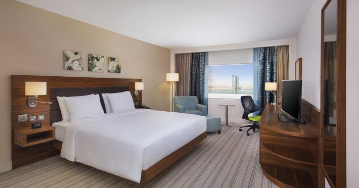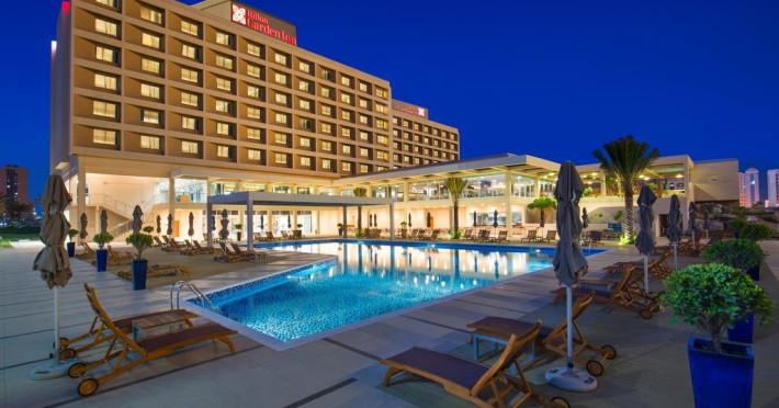 Descriere: Hilton Garden Inn este un hotel de 4* din Ras Al Khaimah, foarte convenabil situat in apropierea muntilor Al Hajar dar si a plajelor cu nisip, intr-o zona animata, cu mall-uri, piete traditionale si atractii istorice. Localizare: Situat in zona Al Nakheel a Emiratelor, la doar cativa pasi de Zona Liber si de Centrul Expozitional RAK, de la hotel se poate parcurge pe jos distanta pana la 2 mari centre comerciale din apropiere. Hotelul este, de asemenea, la o arunctur de bat de pietele traditionale si siturile istorice ale orasului vechi. Aeroportul Ras Al Khaimah este la 25 de minute cu masina, iar aeroportul din Dubai este la 70 de minute cu masina. Dotari camere: Camerele de oaspeti au fie un pat king-size, fie doua paturi queen-size si dispun de: televizor HD de 43 inch cu canale premium, un mini-frigider, facilitati pentru prepararea de cafea si ceai, seif pentru laptop, telefon cu mesagerie vocal, Wi-Fi gratuit, birou cu scaun ergonomic, room service 24 de ore pe zi. Camerele hotelului au vedere la oras, la gradina sau la munte. Facilitati hotel: Hotelul Hilton Garden Inn Ras Al Khaimah dispune de internet Wi-Fi gratuit, un centru de afaceri deschis 24 de ore, acces gratuit la centrul de fitness si un restaurant foarte bun in incinta. Pentru familiile cu copii exista serviciu de babysitting, centru de ingrijire copii,menu-uri dedicate copiilor, patuturi, scaune inalte in restaurant. Alte facilitati: ATM, pavilion cu magazine in incinta, sala pentru depozitare bagaje, zona de bar, ascensoare, magazin de suveniruri, room-service, seif, snack-shop, sala de fitness, piscina, teren de tenis, parcare proprie, facilitati pentru persoane cu dizabilitati. Pagina web: http://hiltongardeninn3.hilton.com/en/hotels/uae/hilton-garden-inn-ras-al-khaimah-RKTHIGI/index.html