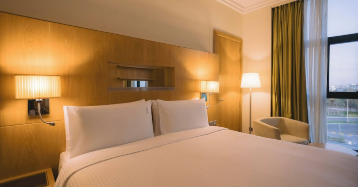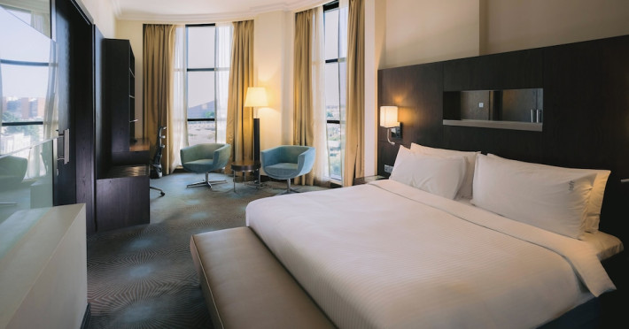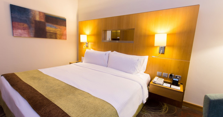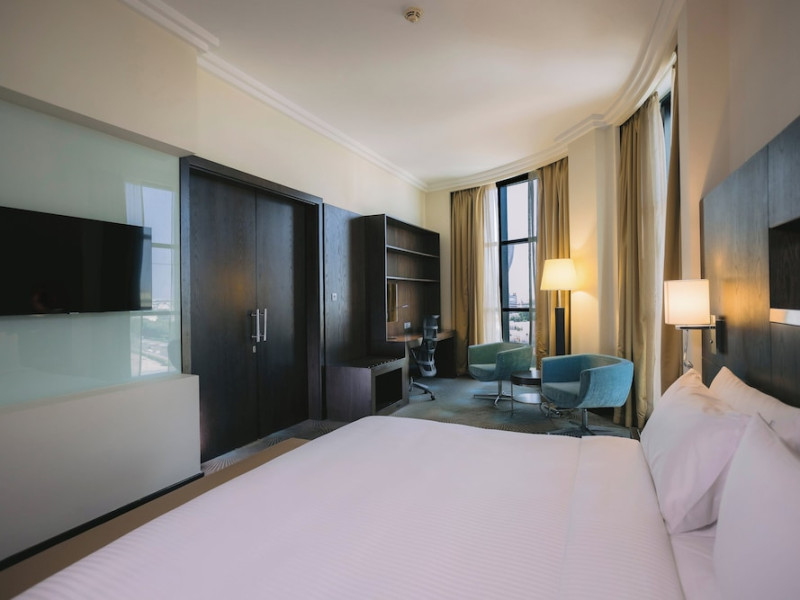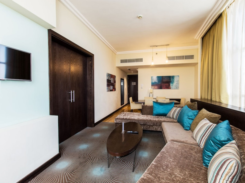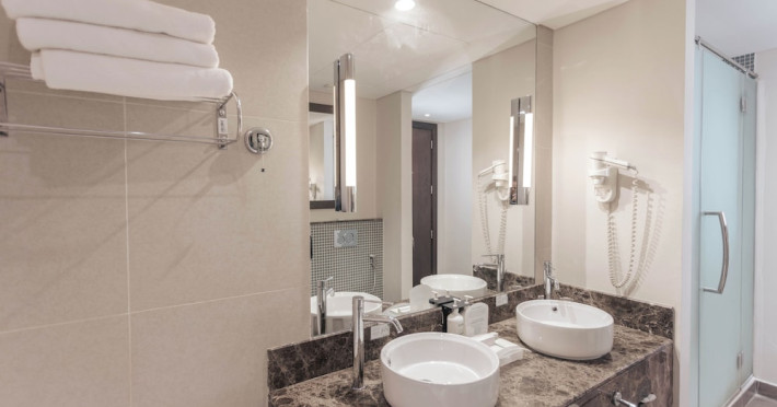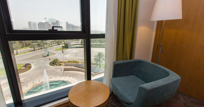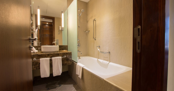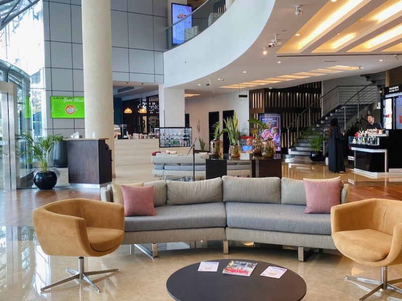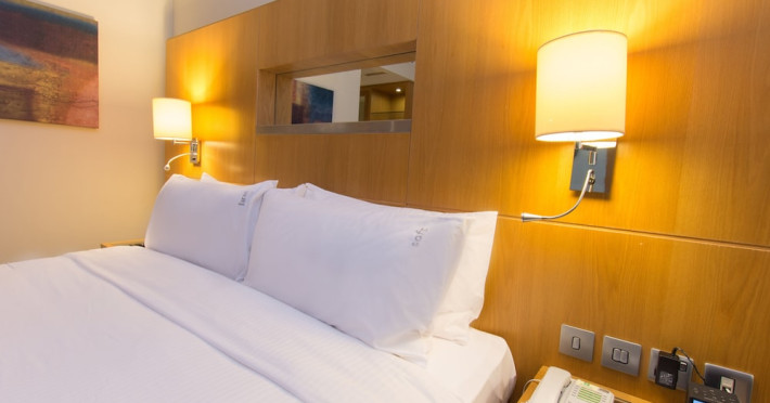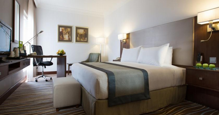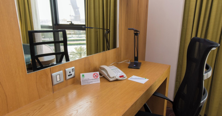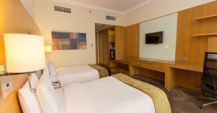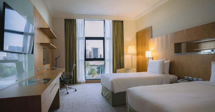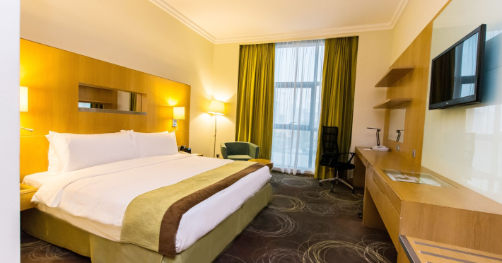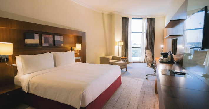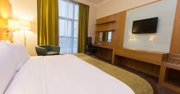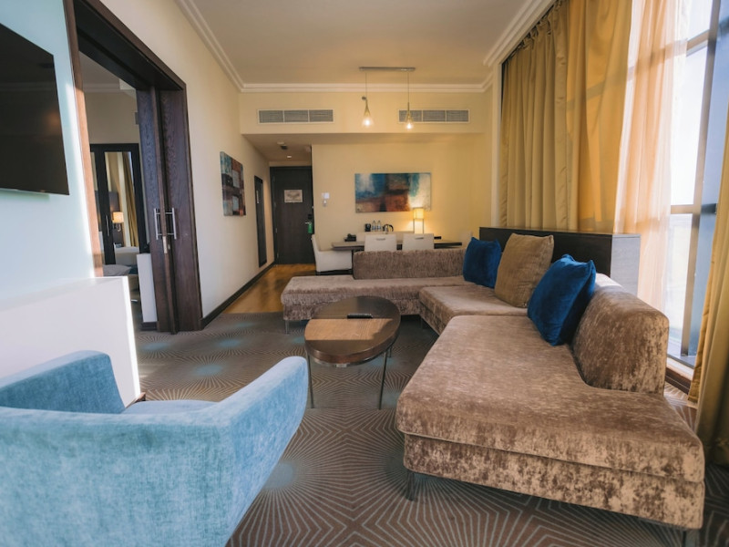 The Holiday Inn Abu Dhabi offers a warm and welcoming atmosphere for business and leisure travelers. Enjoy a peaceful and secure environment with enforced quiet hours and heightened security. Hotel amenities include a gym, pool, children's pool, steam room, sauna, and an outsourced spa and beauty salon. Dining options range from a main restaurant and café to a burger joint, sushi restaurant, and bars offering city views. Conveniently located near grocery stores, restaurants, and salons, the hotel is a five-minute drive from the Abu Dhabi National Exhibition Centre (ADNEC) and the Sheikh Zayed Grand Mosque. Event spaces are available for weddings, birthdays, corporate events, and more, with dedicated event planning support. Valet parking is provided. Guest rooms feature refrigerators and LED televisions with complimentary wired and wireless internet access. The hotel offers complimentary wired internet access, a 24-hour business center, and complimentary newspapers in the lobby. Buffet breakfast is available for a fee. The hotel is approximately 26 km from Abu Dhabi International Airport (AUH). The Holiday Inn Abu Dhabi Hotel is a Business, City hotel, Full Service, Modern, Tourist hotel. The nightlife/restaurants are located in the hotel.