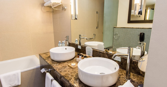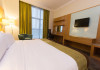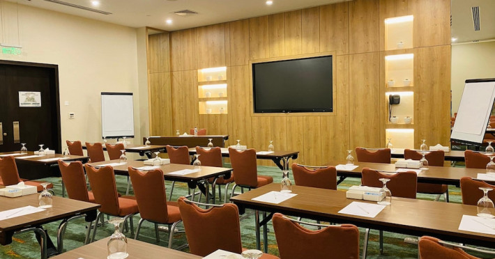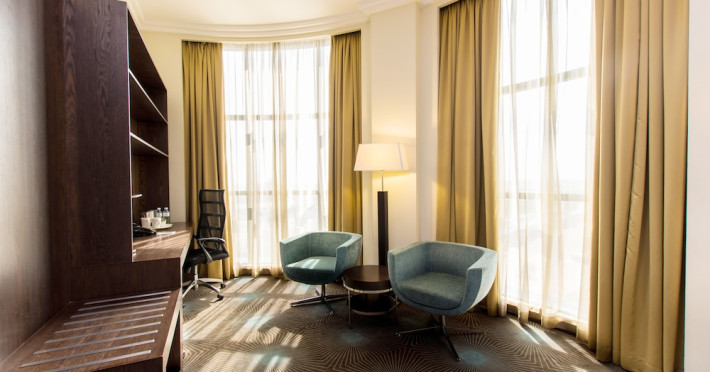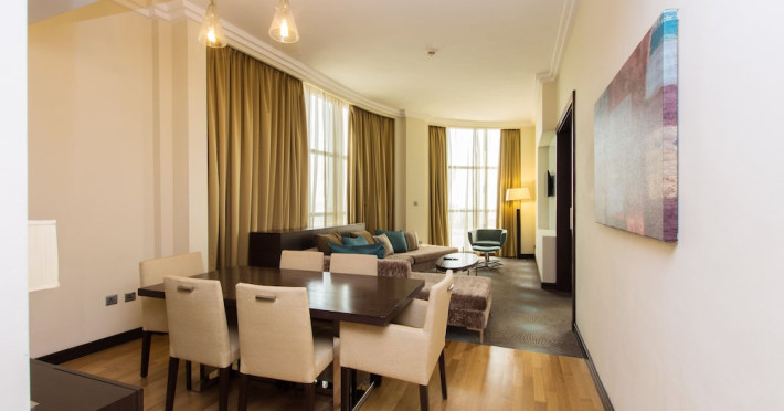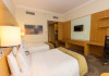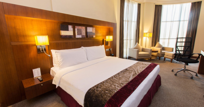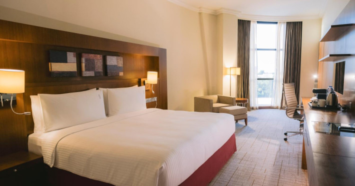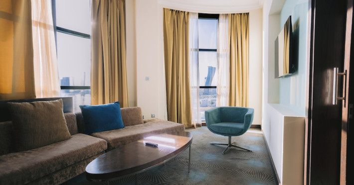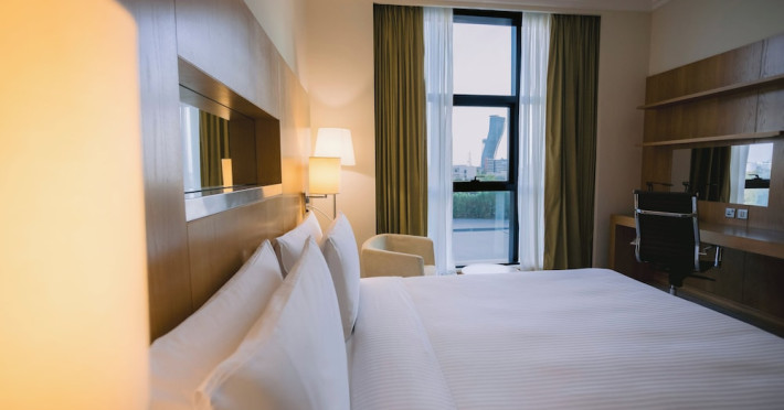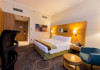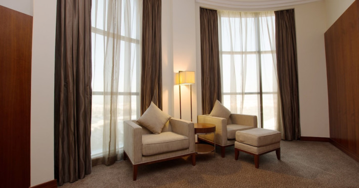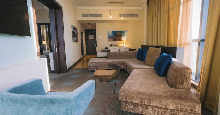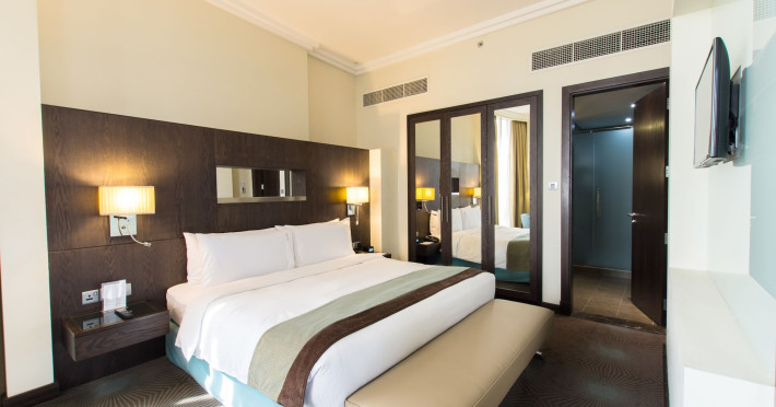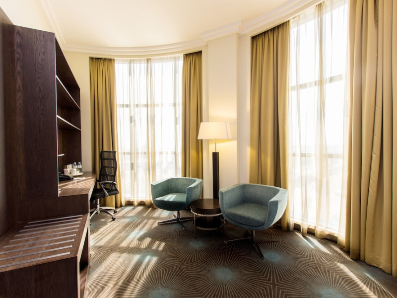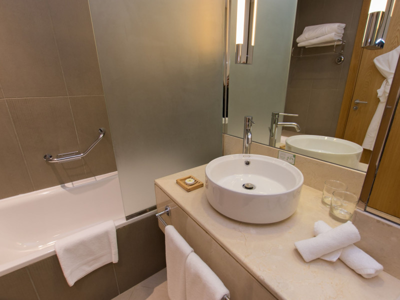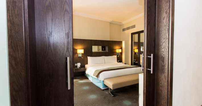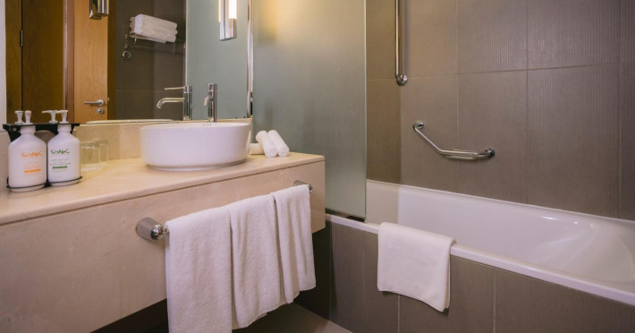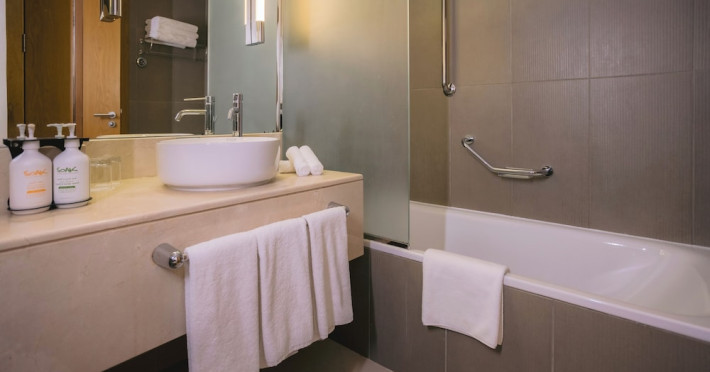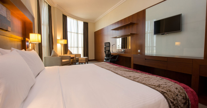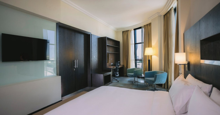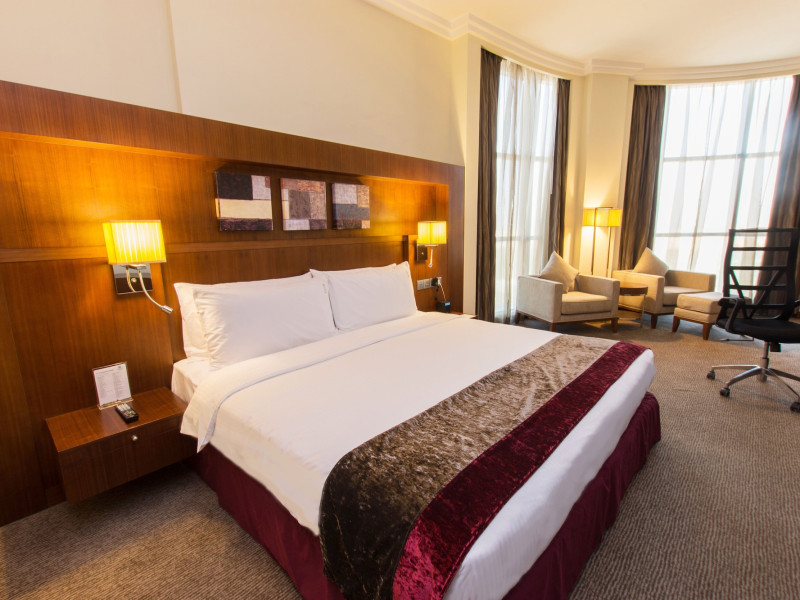 The Holiday Inn Abu Dhabi offers a warm and welcoming atmosphere for business and leisure travelers. Enjoy a peaceful and secure environment with enforced quiet hours and heightened security. Hotel amenities include a gym, pool, children's pool, steam room, sauna, and an outsourced spa and beauty salon. Dining options range from a main restaurant and café to a burger joint, sushi restaurant, and bars offering city views. Conveniently located near grocery stores, restaurants, and salons, the hotel is a five-minute drive from the Abu Dhabi National Exhibition Centre (ADNEC) and the Sheikh Zayed Grand Mosque. Event spaces are available for weddings, birthdays, corporate events, and more, with dedicated event planning support. Valet parking is provided. Guest rooms feature refrigerators and LED televisions with complimentary wired and wireless internet access. The hotel offers complimentary wired internet access, a 24-hour business center, and complimentary newspapers in the lobby. Buffet breakfast is available for a fee. The hotel is approximately 26 km from Abu Dhabi International Airport (AUH). The Holiday Inn Abu Dhabi Hotel is a Business, City hotel, Full Service, Modern, Tourist hotel. The nightlife/restaurants are located in the hotel.