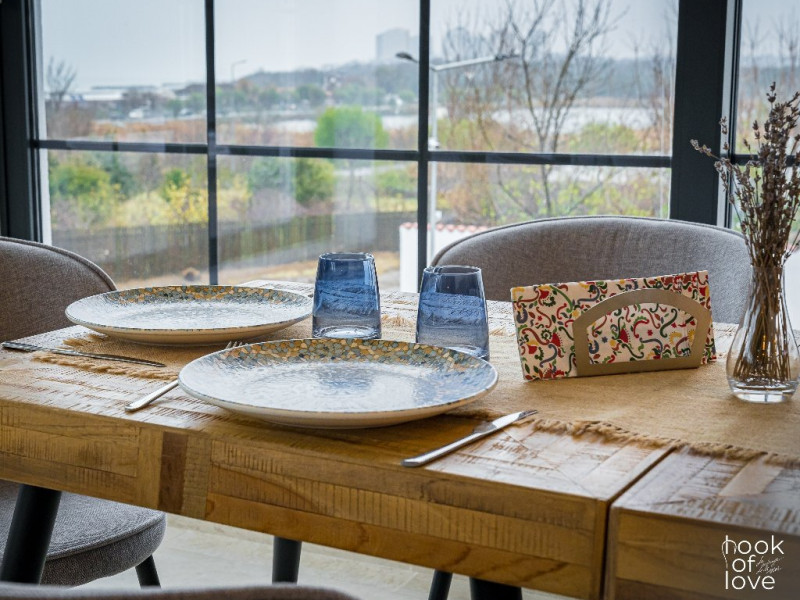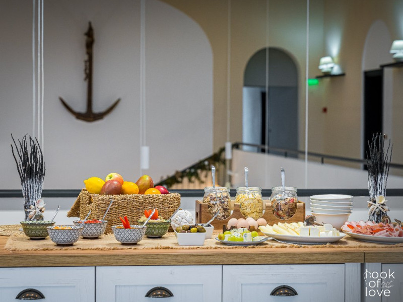 Camere: Hook of love are 20 de camere duble si doua apartamente, cu zone publice spatioase, care insa ofera coltisoare potrivite pentru o lectura in liniste, spre exemplu. Apartamentul are un Living de 26mp cu baie, terasa si gradina proprie, Pat King Size, o canapea extensibila si Dormitor de 23 mp cu baie, terasa si gradina proprie (parter). Camera dubla, ofera extra confort intr-un spatiu de peste 30mp, cu un pat dublu matrimonial, televizor, wi-fi, terasa si gradina propie (parter) si balcon propriu (etaj). -camera cu balcon si vedere la lac si mare -camera parter cu terasa si gradina -camera etaj cu balcon