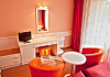 DESCRIERE CAMERE: Camere duble sunt dotate cu pat matrimonial sau twin, balcon, Tv, telefon, minibar, baie cu cabina de dus sau cada, articole de toaleta, halate de baie, uscator de par.