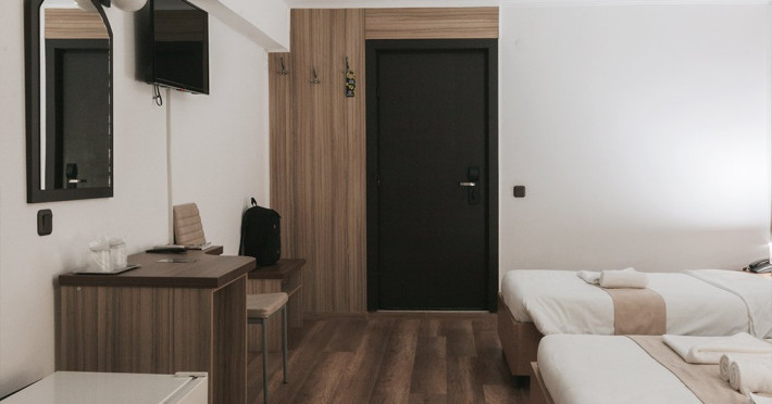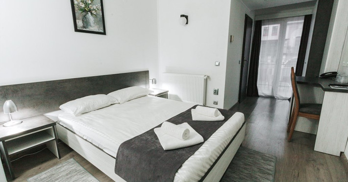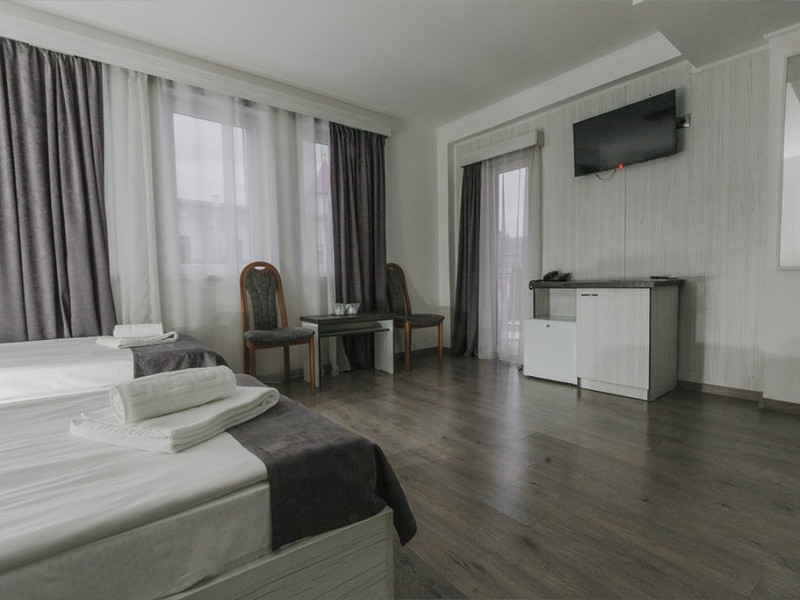 DESCRIERE UNITATE Hotelul dispune de 60 de camere (single, duble, triple, apartamente), parcare privata monitorizata 24/7, restaurant, crama, sala pentru evenimente private, sala de conferinte.