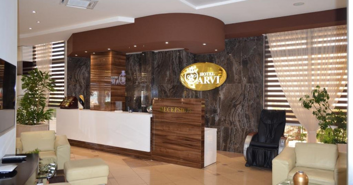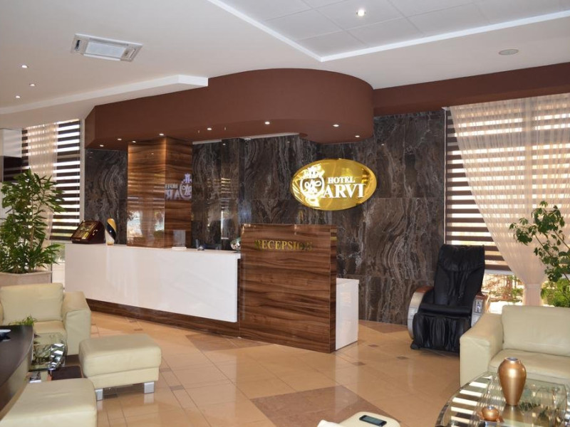 Localizare: Hotelul se afla la 6 minute de mers pe jos de plaja. Descriere: Este amplasat pe bulevardul Taulantia, una dintre cele mai frumoase si populare zone din orasul Durres. Facilitati hotel: Hotelul pune la dispozitia clientilor restaurant, cafe bar, wine bar, sala de conferinte. Dotari camere: Camerele sunt dotate cu aer conditionat, TV, minibar, uscator de par, baie cu dus. Site web: www.hotelarvi.com