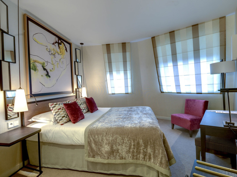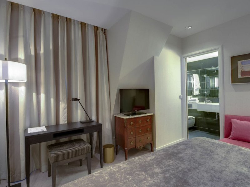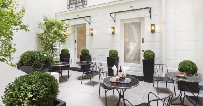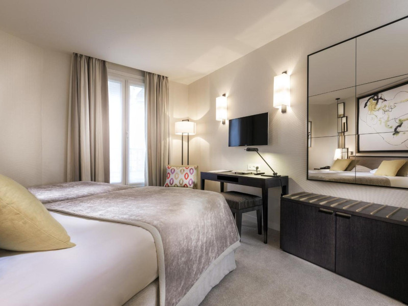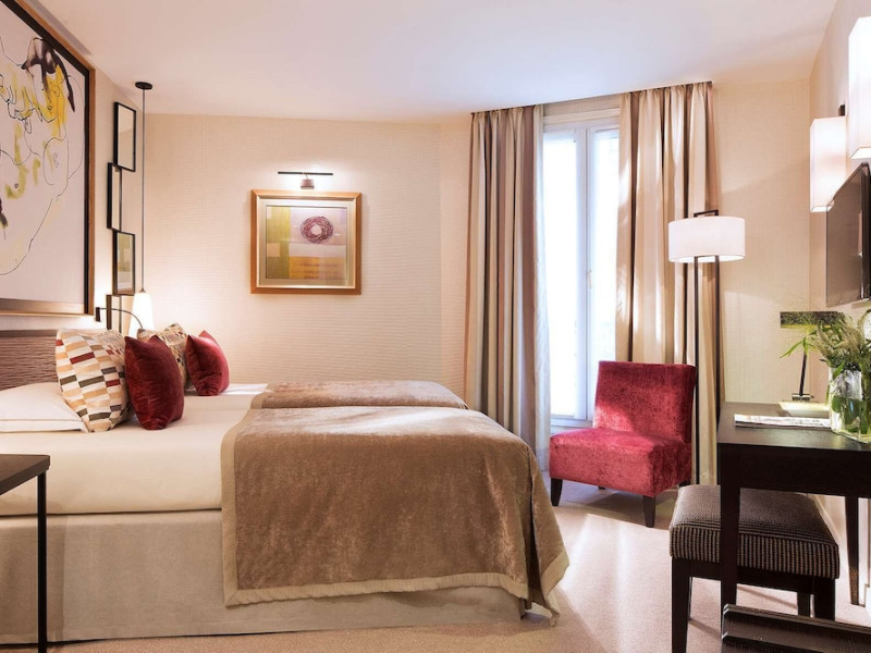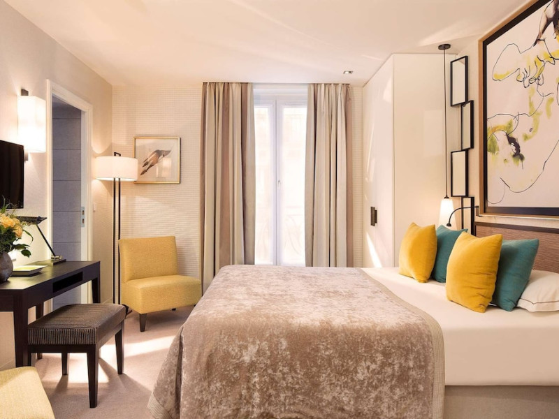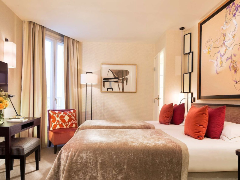 The Balmoral Champs-Élysées Hotel, a completely refurbished 19th-century townhouse with elegant wrought-iron balconies, is located a short walk from the Champs-Élysées and near the Charles de Gaulle-Étoile station (Arc de Triomphe). This non-smoking hotel offers spacious and elegant guestrooms, family rooms, and suites. Amenities include complimentary wired and wireless internet access, a 24-hour business center, express check-out, concierge services, babysitting (surcharge), a 24-hour reception desk with multilingual staff, porter service, and assistance with bookings (restaurants, taxis, museums, shows). A coffee shop/cafe and room service (limited hours) are available, along with a bar/lounge. A buffet breakfast is offered daily (fee applies). Self-parking and a roundtrip airport shuttle (surcharge, 24 hours) are available. Guestrooms feature minibars, LED televisions, satellite programming, shower/tub combinations, designer toiletries, hair dryers, phones, laptop-compatible safes, and desks. Some rooms have private balconies and coffee machines. Recreational opportunities include bicycle rentals, a terrace, and a garden. Free iPads with international press, music, and videos are available. The hotel is 0.4 km from the Champs-Élysées and 0.6 km from the Arc de Triomphe. Paris Charles de Gaulle Airport (CDG) is the preferred airport. The Hotel Balmoral is a Tourist hotel. The nightlife/restaurants are easily accessible by taxi or bus from the hotel.