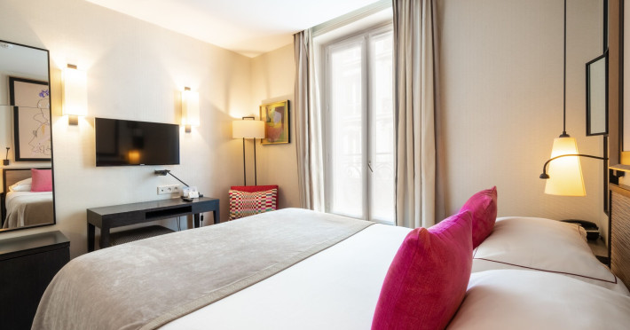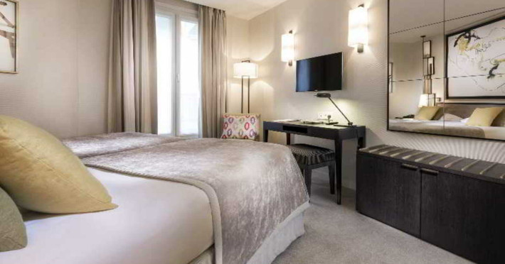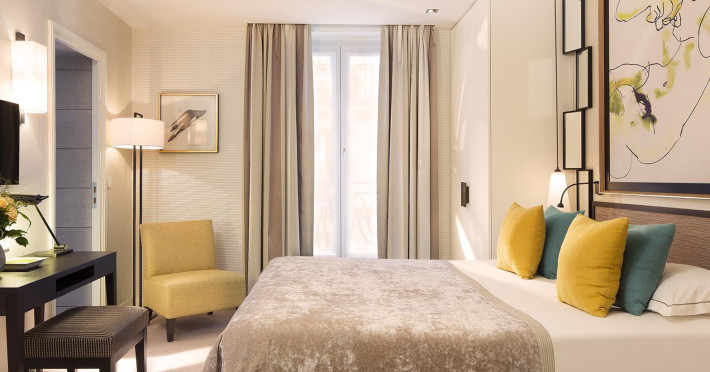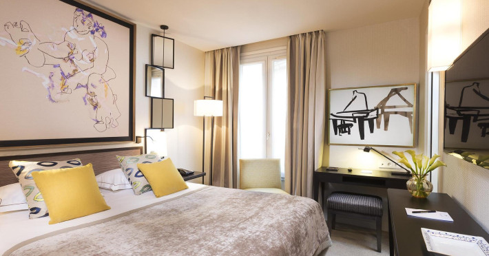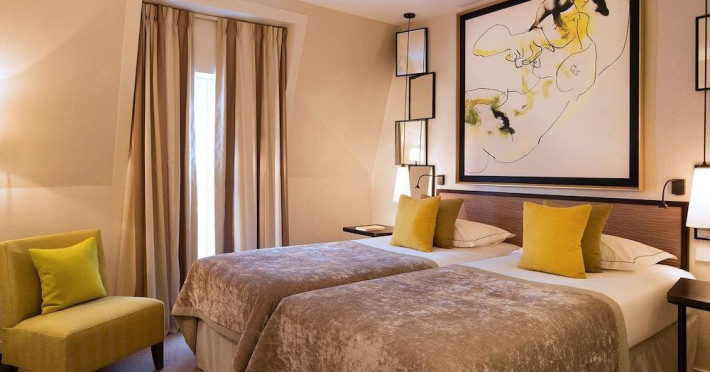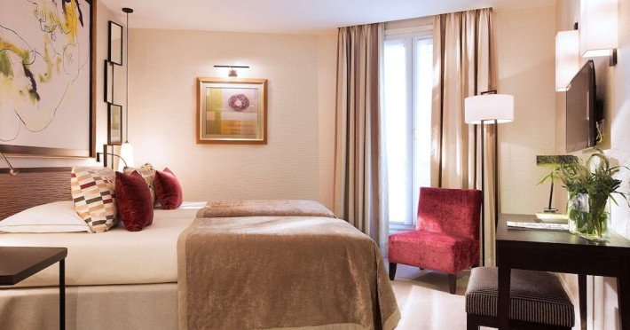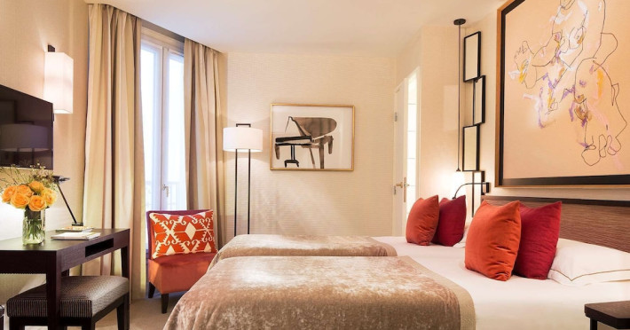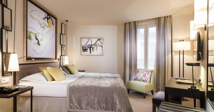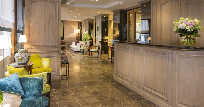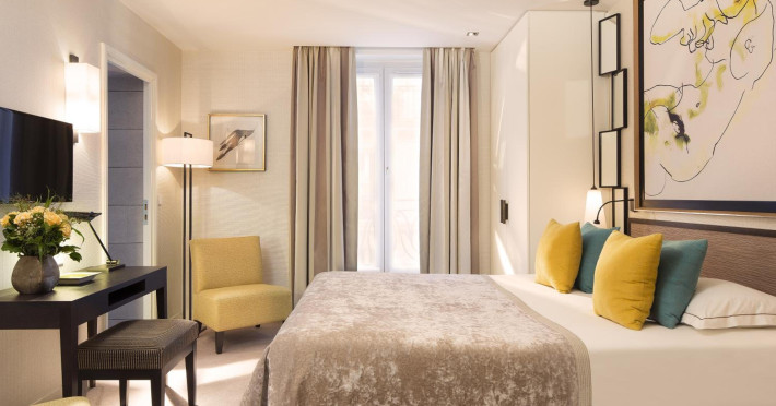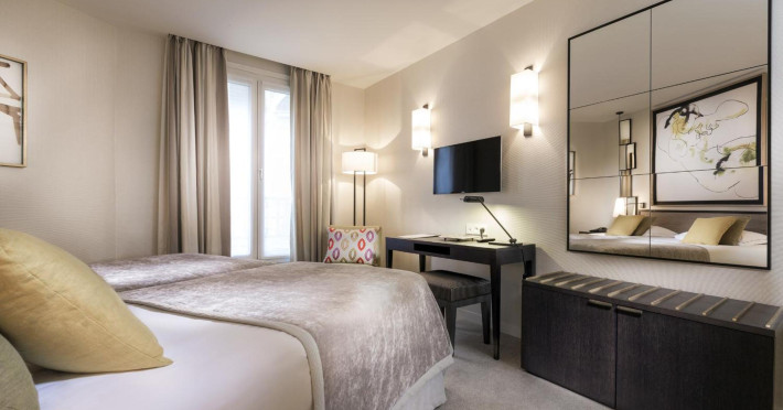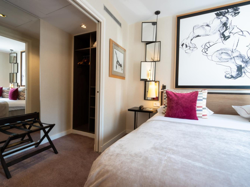 The Balmoral Champs-Élysées Hotel, a completely refurbished 19th-century townhouse with elegant wrought-iron balconies, is located a short walk from the Champs-Élysées and near the Charles de Gaulle-Étoile station (Arc de Triomphe). This non-smoking hotel offers spacious and elegant guestrooms, family rooms, and suites. Amenities include complimentary wired and wireless internet access, a 24-hour business center, express check-out, concierge services, babysitting (surcharge), a 24-hour reception desk with multilingual staff, porter service, and assistance with bookings (restaurants, taxis, museums, shows). A coffee shop/cafe and room service (limited hours) are available, along with a bar/lounge. A buffet breakfast is offered daily (fee applies). Self-parking and a roundtrip airport shuttle (surcharge, 24 hours) are available. Guestrooms feature minibars, LED televisions, satellite programming, shower/tub combinations, designer toiletries, hair dryers, phones, laptop-compatible safes, and desks. Some rooms have private balconies and coffee machines. Recreational opportunities include bicycle rentals, a terrace, and a garden. Free iPads with international press, music, and videos are available. The hotel is 0.4 km from the Champs-Élysées and 0.6 km from the Arc de Triomphe. Paris Charles de Gaulle Airport (CDG) is the preferred airport. The Hotel Balmoral is a Tourist hotel. The nightlife/restaurants are easily accessible by taxi or bus from the hotel.
