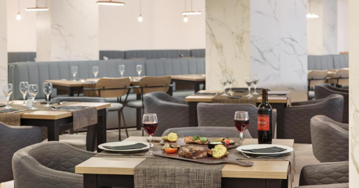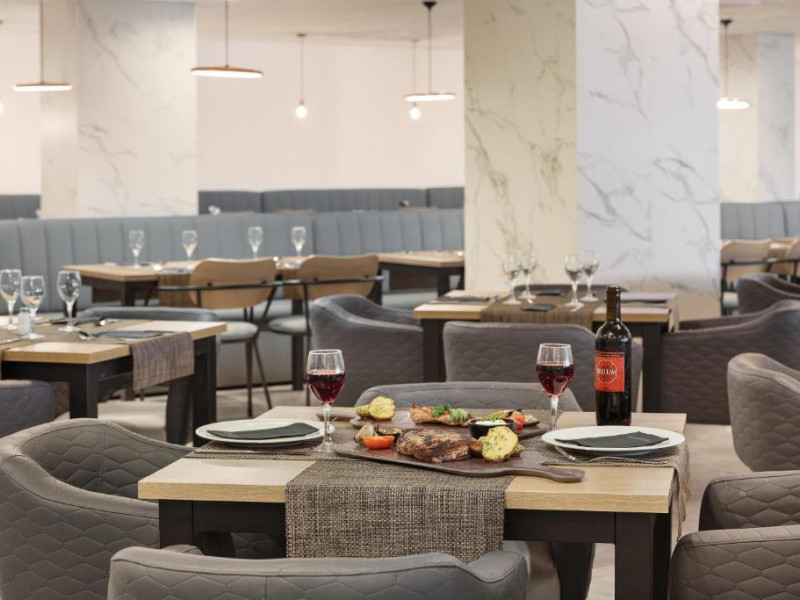 Restaurantul tip bufet, cu bucătărie deschisă serveste preparate nationale si internationale. Hotelul are și un snack bar, deschis in perioada iunie - septembrie.
