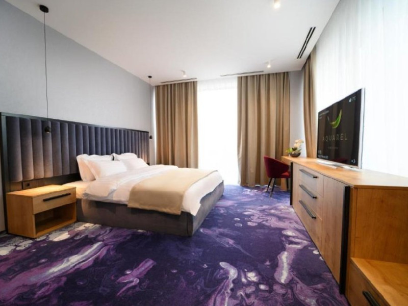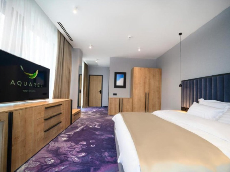 Aflat in Zalau, la 36 km de statiunea balneara Baile Boghis, Hotelul Boutique Aquarel asigura cazare cu un lounge comun, un restaurant, un bar si parcare privata gratuita. Printre facilitatile oferite se numara receptie cu program non-stop, room service si Wi-Fi gratuit in intreaga proprietate. Hotelul pune la dispozitie camere de familie. Toate camerele hotelului sunt prevazute cu aer conditionat, zona de relaxare, TV cu ecran plat cu canale prin cablu, seif si baie privata cu dus, halate de baie si papuci. Camerele de la Hotel Boutique Aquarel au lenjerie de pat si prosoape. Proprietatea ofera un mic dejun continental sau tip bufet. Hotelul Boutique Aquarel asigura cazare de 4 stele cu o piscina interioara, un centru Spa si o sauna. Cel mai apropiat aeroport este Aeroportul International Satu Mare, situat la 80 km de Hotelul Boutique Aquarel.