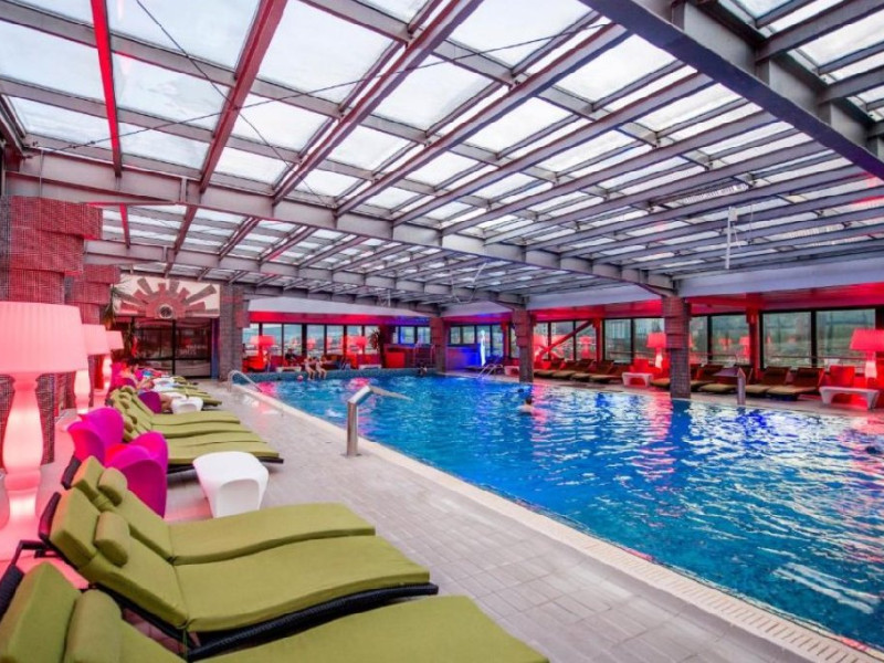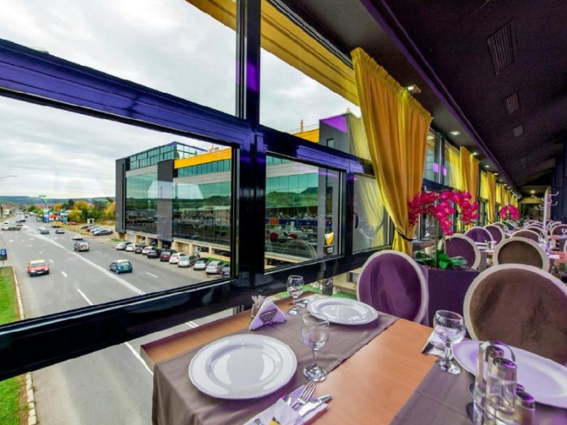 Restaurantele separate sunt specializate in bucatarie autentica romaneasca, maghiara si italiana. Barul de pe acoperis ofera vedere panoramica la padurea din jur. Oaspetii beneficiaza de o receptie deschisa non-stop.