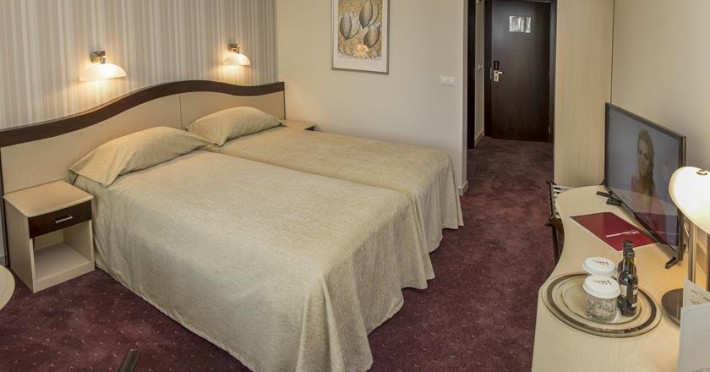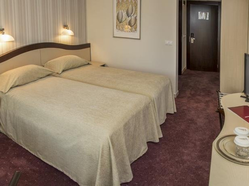 DESCRIERE CAMERE: 263 locuri de cazare, respectiv in 119 camere duble, 17 camere single, 4 camere pentru persoane cu dizabilitati si 4 apartamente. Dotari camere minibar, telefon, LED TV, conexiune internet, incalzire si aer conditionat proprii, baie cu dus, uscator de par, halat de baie.