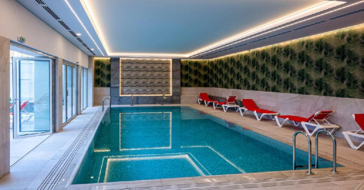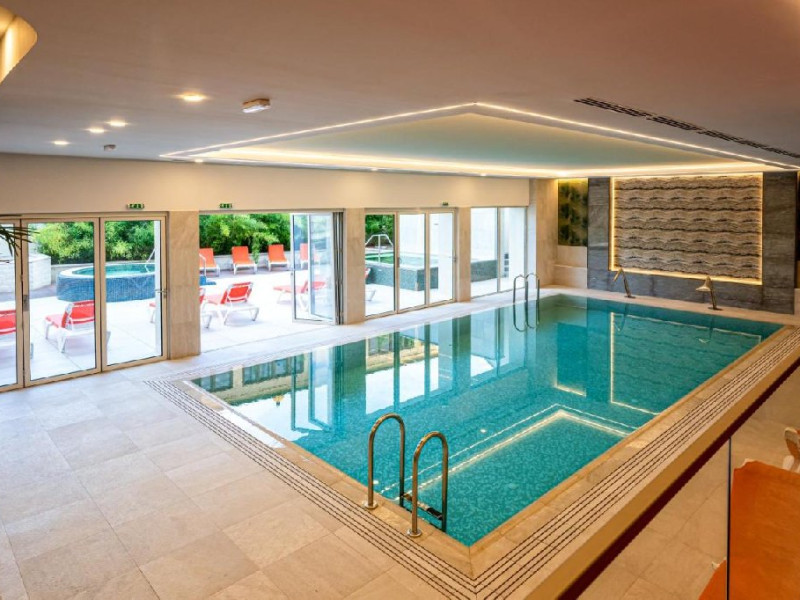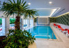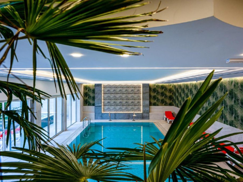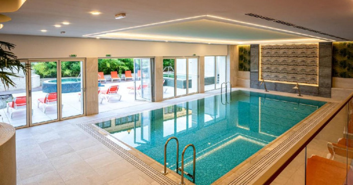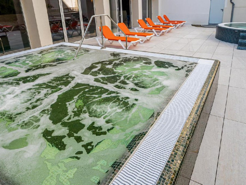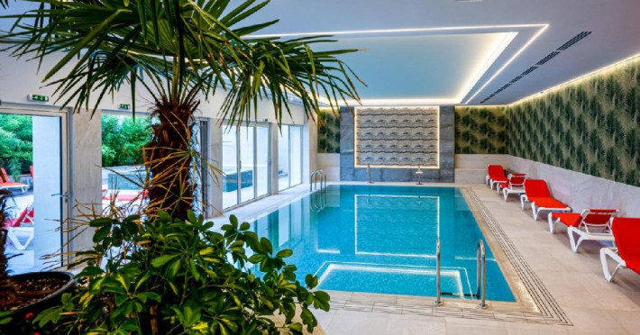 Centrul SPA are o suprafata de 250 mp si este dotat cu piscina interioara si 2 fantani cervicale. De asemenea, tot aici veti regasi salina cu sare de Himalaya, o sauna umeda, o sauna uscata, zona de relaxare cu 4 sezlonguri imbracate in mozaic si incalzite, un dus emotional si 2 jacuzzi exterioare cu apa termala.