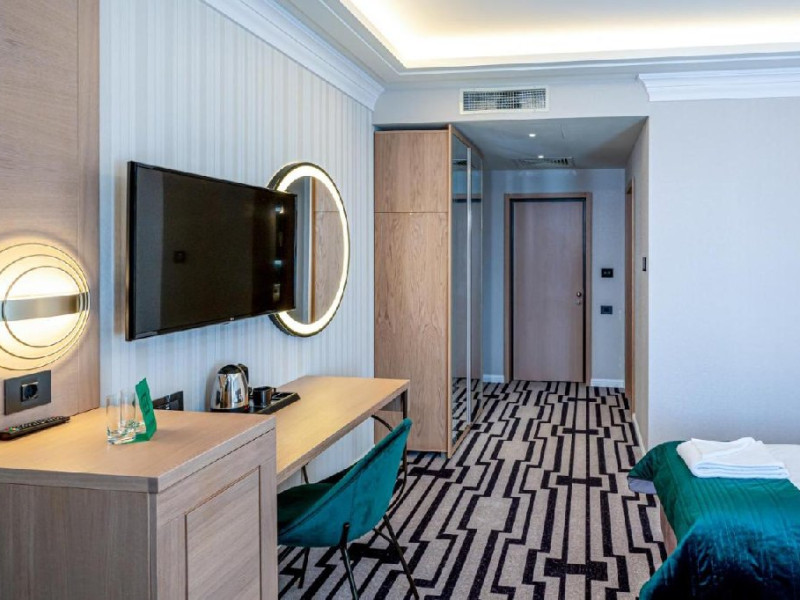 Toate camerele sunt dotate cu mobilier de calitate superioara, LED TV, telefon, mini frigider cu produse de minibar, halat, papuci, seif, uscator de par.