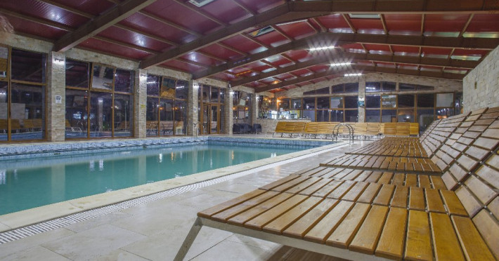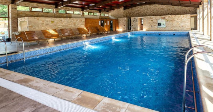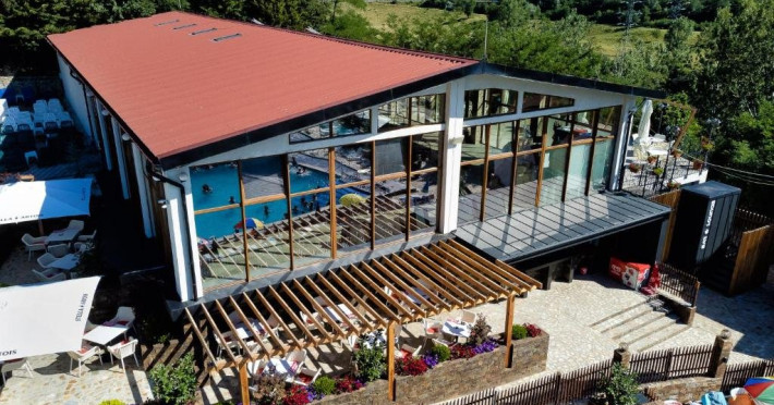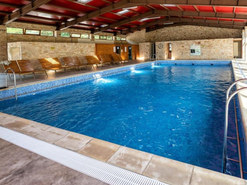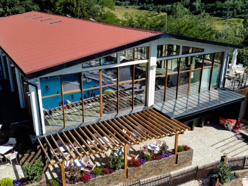 Locatia dispune de piscina acoperita si piscina exterioara cu apa termala, sauna, restaurant si parcare.