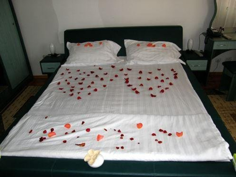 DESCRIERE CAMERE Dotari camere: TV, minibar, baie cu dus, telefon. Hotelul dispune de camere single, duble cu pat matrimonial si cu 2 paturi, apartamente (apartamentul este compus din living si dormitor).