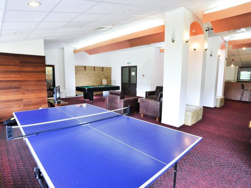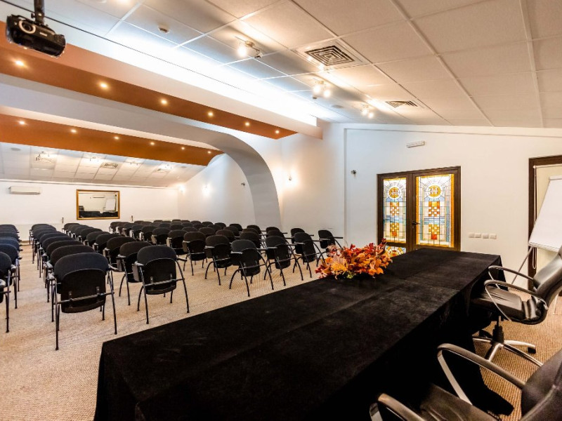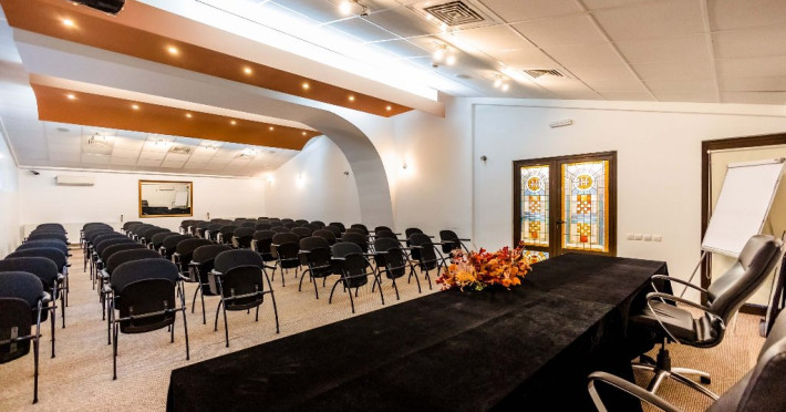 FACILITATI EVENIMENTE: O sala de conferinte de 100 locuri situata la ultimul etaj al hotelului ofera, pe langa o panoramaspectaculoasa asupra culmilor muntoase ale Cindrelului acces facil la zona de meeting sicoffee-break, beneficiaza de lumina naturala, wi- fi gratuit, instalatie declimatizare.