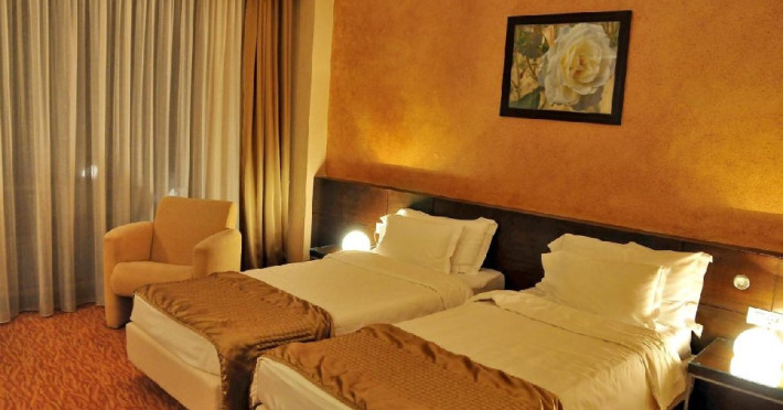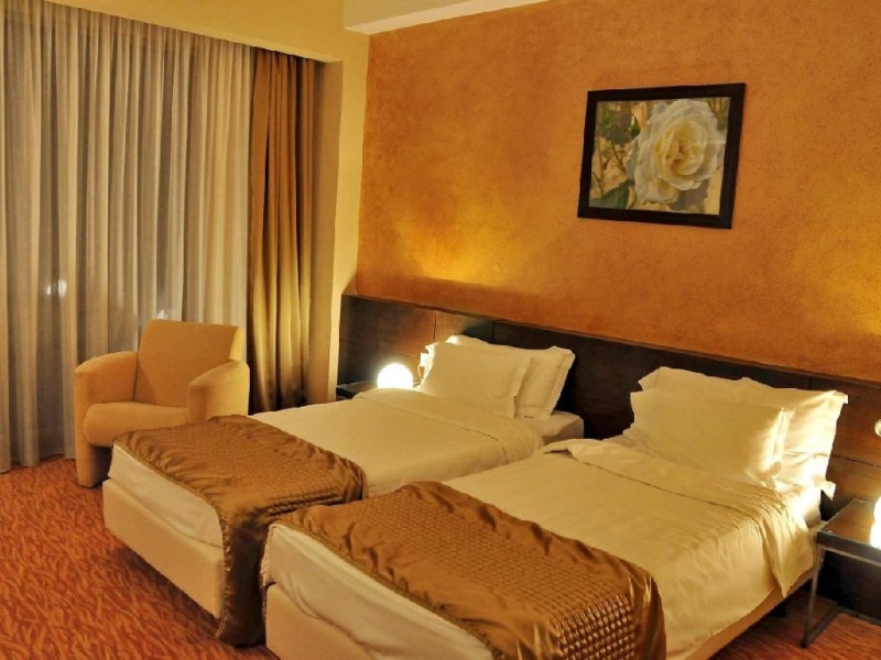 DESCRIERE CAMERE: Camera dubla cu o suprafata totala de 28-33 mp, camerele standard pot fi formate din doua paturi (twin) sau un pat matrimonial. Sunt dotate cu climatizare, minibar, seif, tv, baie cu dus, uscator de par, halate de baie si papuci de camera. Majoritatea camerelor au balcon.
