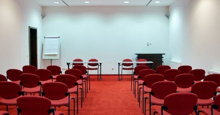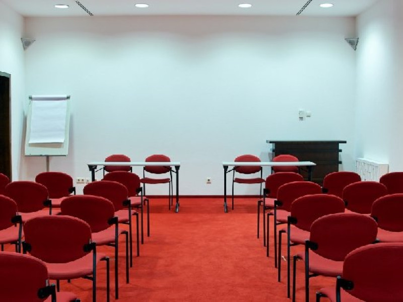 FACILITATI EVENIMENTE Situata la etajul 2 al hotelului, sala de conferinte a fost conceputa pentru a gazdui intalniri corporate, seminarii, lansari de produs, workshop-uri sau alte evenimente dedicate unui public mai restrans. Cu o capacitate de 60 de persoane, sala de conferinte dispune de un aranjament versatil, fiind adaptabila oricarui tip de eveniment. Printre dotari se numara: videoproiector, ecran de proiectie, microfon, flipchart, markere, acces wi-fi nelimitat, precum si asistenta personalizata pe intreaga durata a evenimentului.