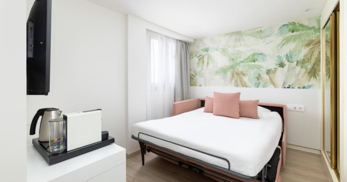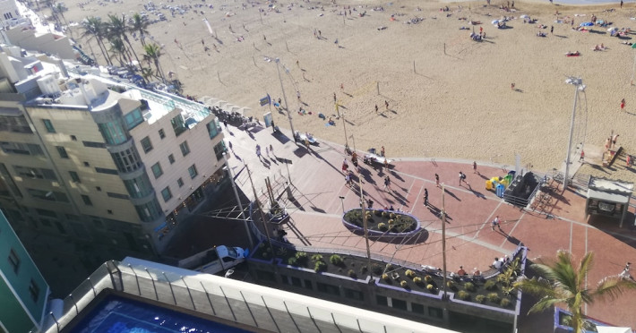 Hotel facilities include a lounge bar, laundry service, restaurant, 24 hour room service, terrace/solarium, several meeting rooms, lift/elevator, swimming pool, gym, discotheque, money exchange, WiFi internet access and parking. All rooms are equipped with complete bathroom with shower and hairdryer, mini-bar, air conditioning, safe, satellite TV, telephone and InternetAddress: C/ Gomera, 6, (Playa de las Canteras), 35008 Las Palmas, Gran Canaria, Spain