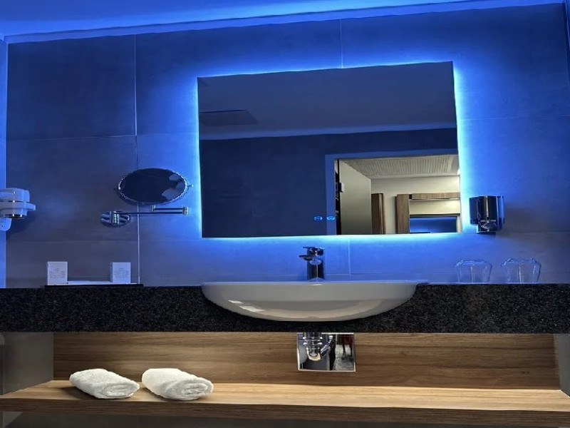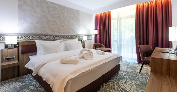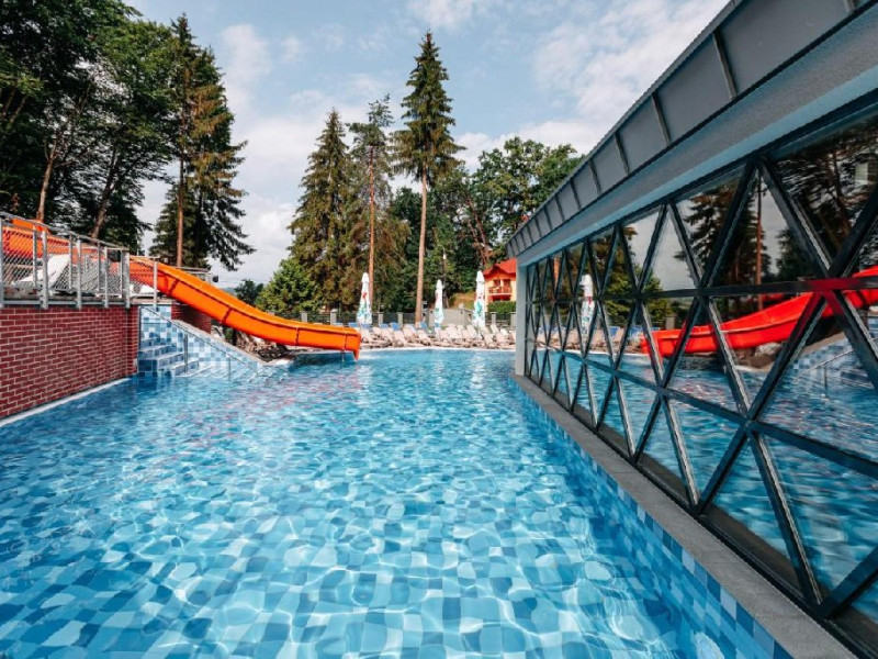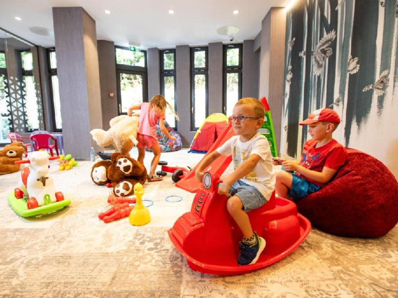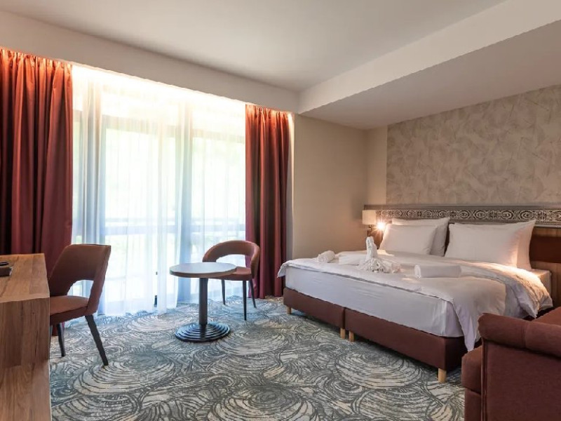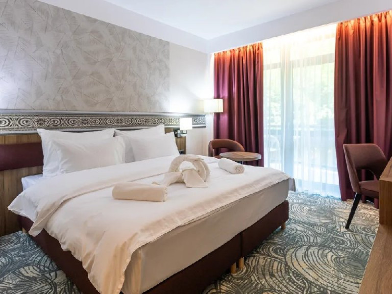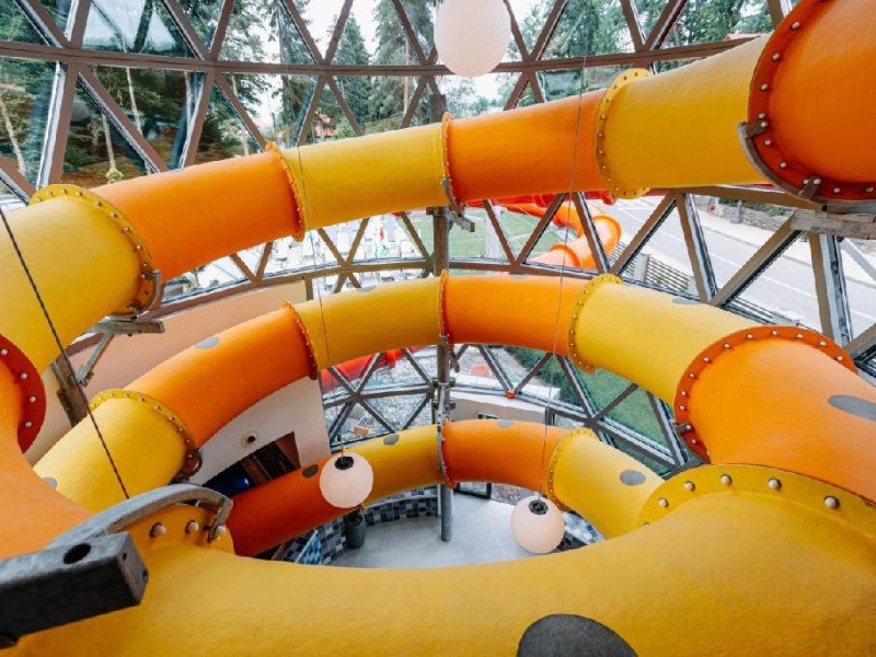 Zona de wellness a hotelului este amenajata la subsol, oferind o varietate de piscine, doua tobogane cu apa, diferite tipuri de saune, o unitate de servicii terapeutice cu asistenta medicala, servicii de masaj si un bar cu gustari si bauturi. Restaurantul, barul, sala de conferinte, sala de sport, zona pentru copii si camera de sare sunt, de asemenea, gratuite pentru oaspeti. Daca doriti sa petreceti ceva timp explorand imprejurimile sau sa participati la o gama larga de activitati de agrement, personalul nostru va fi mai mult decat bucuros sa va ajute sa gasiti cele mai bune atractii din zona. Centrul de conferinte al hotelului este complet echipat si poate gazdui pana la 240 de participanti. Cladirea in sine este conceputa pentru a fi sustenabila pentru activitati prin reducerea poluarii fonice si vizuale.