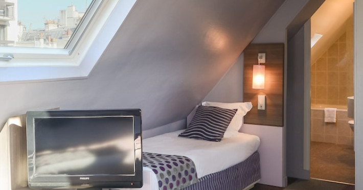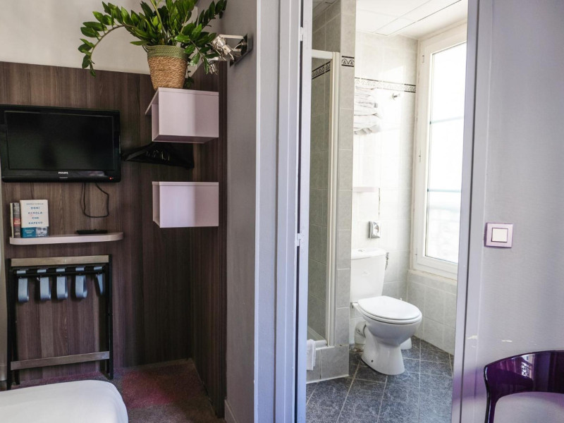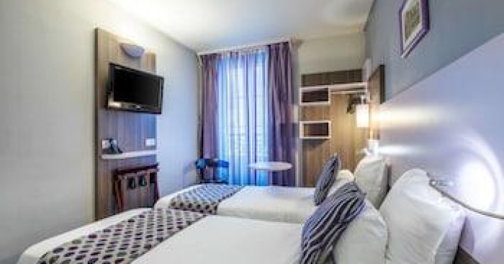 Located in Paris's 11th Arrondissement, Hôtel de Charonne offers comfortable accommodation with complimentary Wi-Fi access throughout the property. The hotel is ideally situated near Place de la Nation and 150 meters from Rue des Boulets Metro Station, providing easy access to the city. The Bastille Opera and Père Lachaise Cemetery are within walking distance. The hotel features a 24-hour front desk with multilingual staff, luggage storage, and tour/ticket assistance. Guests can enjoy a buffet breakfast served daily, with the option of in-room service and newspapers. The guest rooms are equipped with flat-screen televisions with satellite channels, work desks, blackout drapes/curtains, and private bathrooms with complimentary toiletries and hair dryers. Irons/ironing boards are available upon request. Daily housekeeping is provided. Self-parking is available onsite for a fee. Smoking is strictly prohibited throughout the hotel. The Hotel de Charonne is a Tourist hotel. The nightlife/restaurants are located in the hotel.