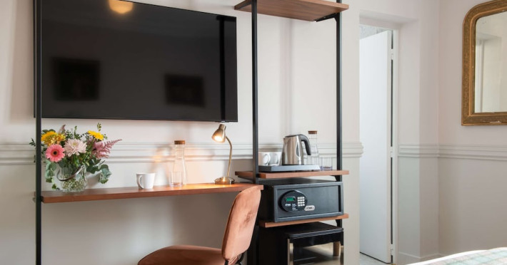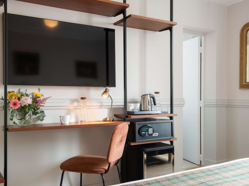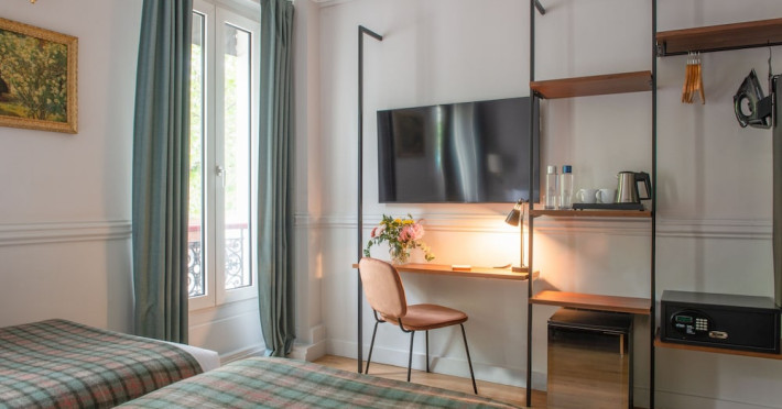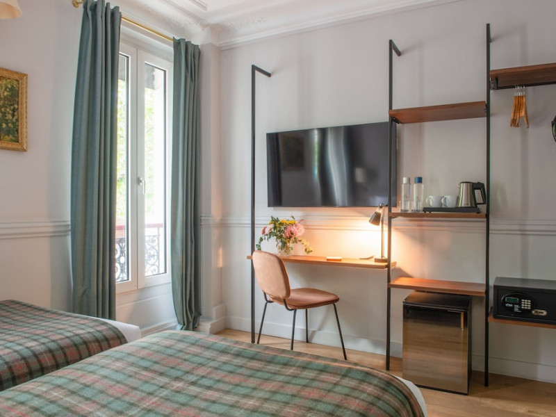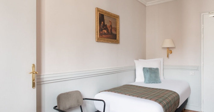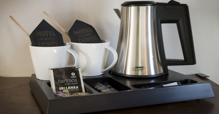 Located in Paris's 12th Arrondissement, Hôtel de la Porte Dorée is near the Bois de Vincennes and offers convenient access to city attractions via nearby metro and bus lines. The hotel features classic, air-conditioned, and soundproofed rooms accessible by lift, each equipped with free Wi-Fi, a flat-screen TV with satellite channels, a DVD player, and tea and coffee making facilities. Private bathrooms include complimentary toiletries and a hairdryer. Guests can enjoy a daily buffet breakfast for a fee and relax in the hotel's lounge. Additional amenities include a 24-hour front desk, multilingual staff, concierge services, luggage storage, and a computer station. The hotel is eco-certified, employing energy-saving equipment and recycling programs. Bicycles are available for rent. The Hotel De La Porte Doree is a hotel.