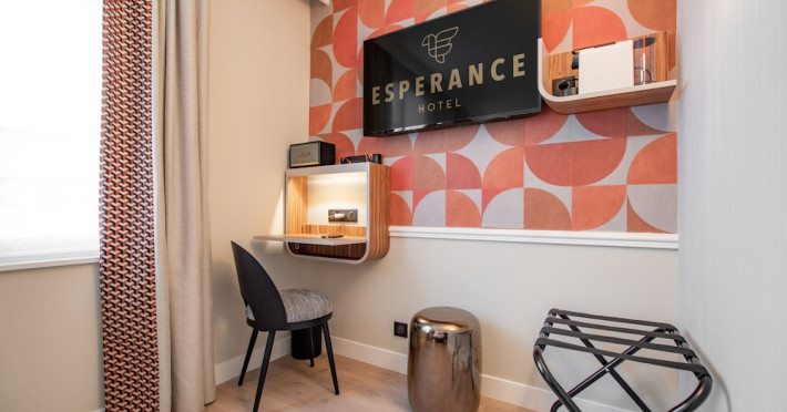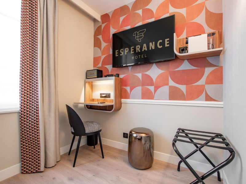 Hôtel de l'Espérance places you in the heart of Paris, within a 15-minute walk of Place d'Italie and Panthéon. This hotel offers a terrace, complimentary wireless internet access, and concierge services. Buffet breakfasts are available daily for a fee from 7:30 AM to 10:30 AM. Featured amenities include complimentary newspapers in the lobby, a 24-hour front desk, and luggage storage. The 38 guestrooms feature espresso makers, flat-screen televisions with cable programming, phones, safes, and desks. Private bathrooms have complimentary toiletries and hair dryers. It is 0.8 mi (1.3 km) from Luxembourg Gardens and 1.4 mi (2.3 km) from Notre-Dame. Nearby attractions include Rue Mouffetard (0.2 mi), Jardin des Plantes (0.4 mi), Place d'Italie (0.6 mi), and Panthéon (0.7 mi). The nearest airports are Paris Orly Airport (ORY) - 8.5 mi, Paris Charles de Gaulle Airport (CDG) - 22.6 mi, and Paris Beauvais Airport (BVA) - 66.7 mi. The Hotel de L’Esperance is a hotel.