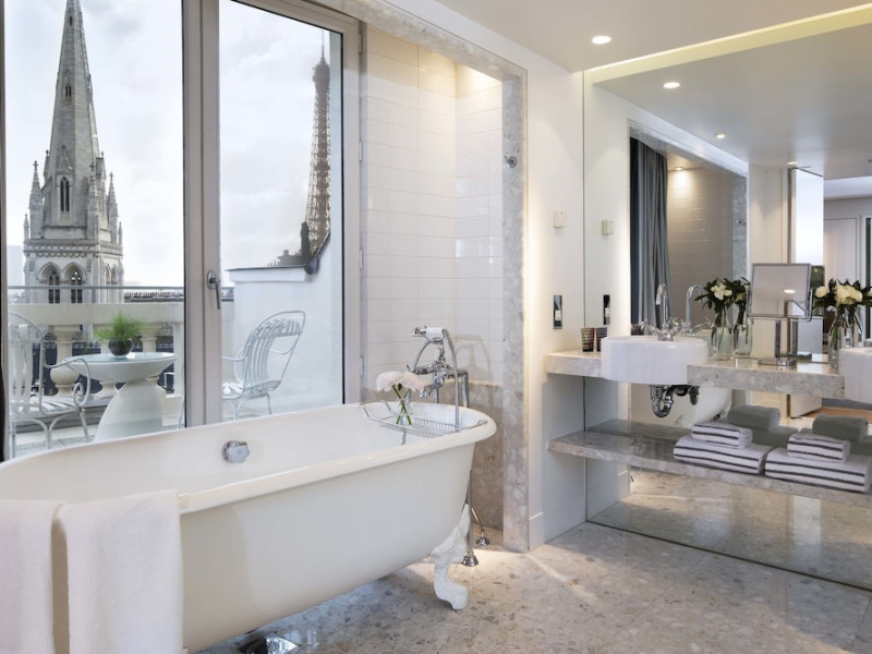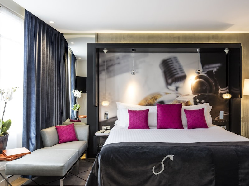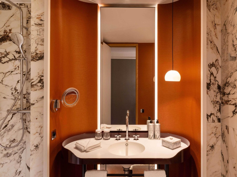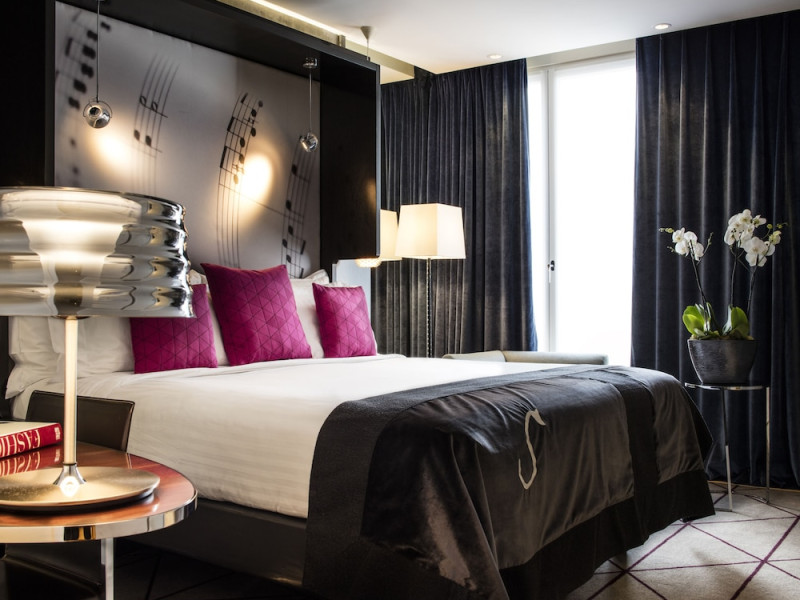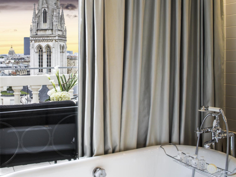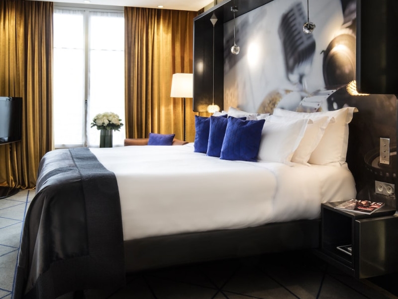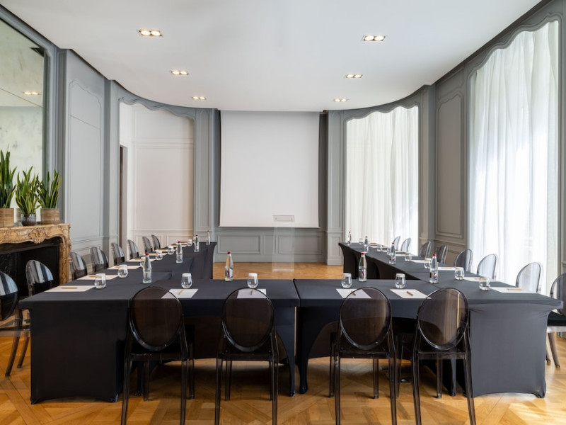 Hôtel de Sers, a 19th-century mansion, offers 52 air-conditioned, soundproofed guestrooms with minibars, espresso makers, 46-inch Smart TVs with satellite programming, and complimentary wired and wireless internet access. Bathrooms include showers, complimentary toiletries, and hair dryers. Additional room amenities include phones, safes, and desks. The hotel features a restaurant with a bar/lounge, 24-hour room service, and a continental breakfast (fee applies, 7 AM–11 AM). Recreational amenities include a 24-hour fitness center and bicycle rentals. Other amenities include complimentary wireless internet access, concierge services, babysitting (surcharge), a 24-hour business center, limo/town car service, and 646 square feet (60 square meters) of meeting/conference space. Self-parking is available (fee applies). The hotel also boasts a courtyard, sauna, and hammam. Massages and airport transfers can be arranged (prior reservation required). Located near the Champs-Élysées, it's a 5-minute walk from George V and Alma – Marceau Metro stations. Nearby attractions include Avenue Montaigne, Arc de Triomphe, Grand Palais, and various other Parisian landmarks. Paris Orly (ORY) and Paris Charles de Gaulle (CDG) airports are 21.1 km and 34.7 km away, respectively. The hotel is officially rated by ATOUT France.