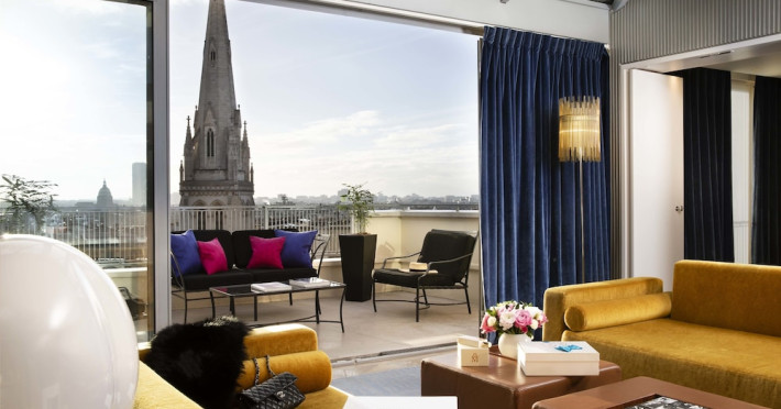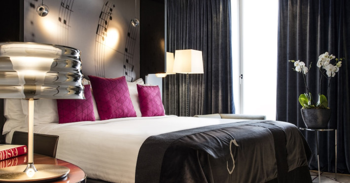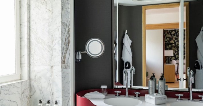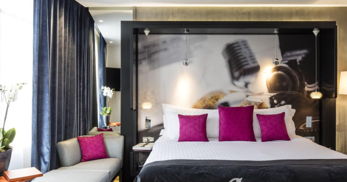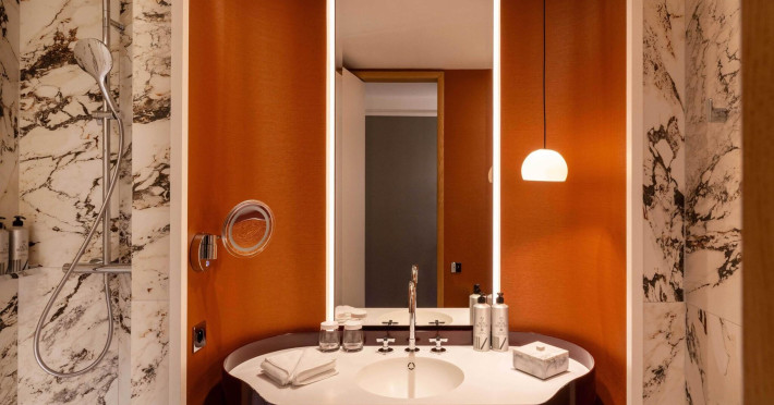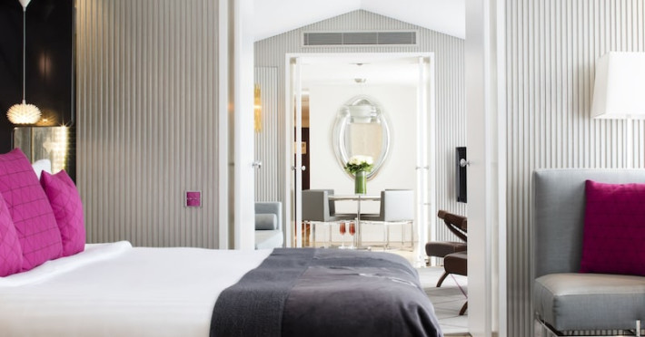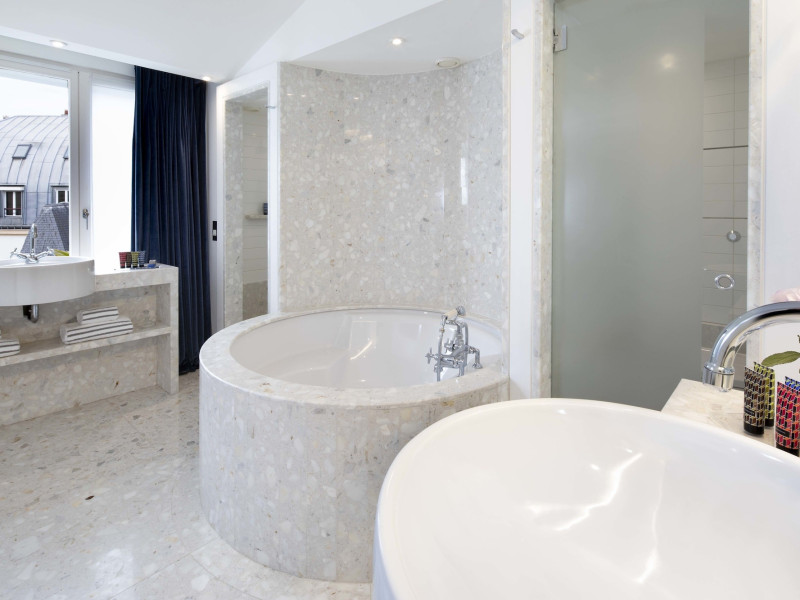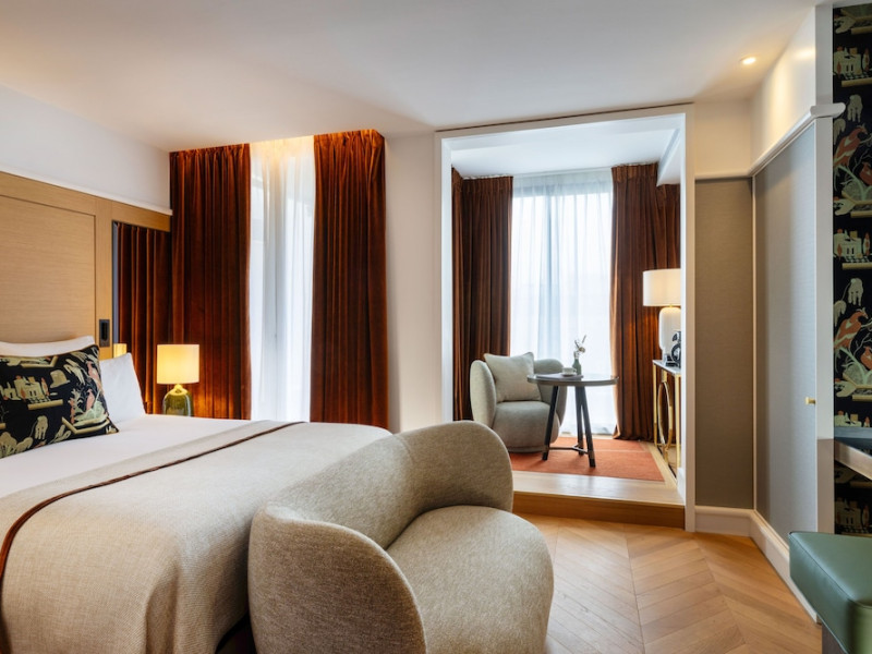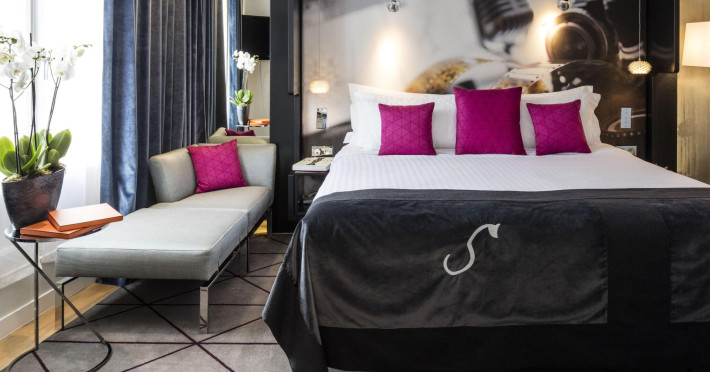 Hôtel de Sers, a 19th-century mansion, offers 52 air-conditioned, soundproofed guestrooms with minibars, espresso makers, 46-inch Smart TVs with satellite programming, and complimentary wired and wireless internet access. Bathrooms include showers, complimentary toiletries, and hair dryers. Additional room amenities include phones, safes, and desks. The hotel features a restaurant with a bar/lounge, 24-hour room service, and a continental breakfast (fee applies, 7 AM–11 AM). Recreational amenities include a 24-hour fitness center and bicycle rentals. Other amenities include complimentary wireless internet access, concierge services, babysitting (surcharge), a 24-hour business center, limo/town car service, and 646 square feet (60 square meters) of meeting/conference space. Self-parking is available (fee applies). The hotel also boasts a courtyard, sauna, and hammam. Massages and airport transfers can be arranged (prior reservation required). Located near the Champs-Élysées, it's a 5-minute walk from George V and Alma – Marceau Metro stations. Nearby attractions include Avenue Montaigne, Arc de Triomphe, Grand Palais, and various other Parisian landmarks. Paris Orly (ORY) and Paris Charles de Gaulle (CDG) airports are 21.1 km and 34.7 km away, respectively. The hotel is officially rated by ATOUT France.