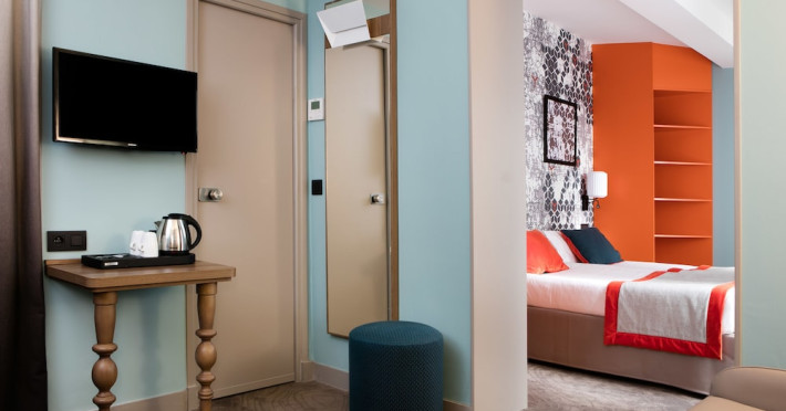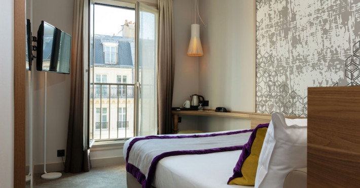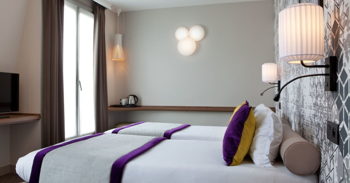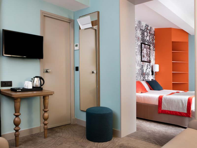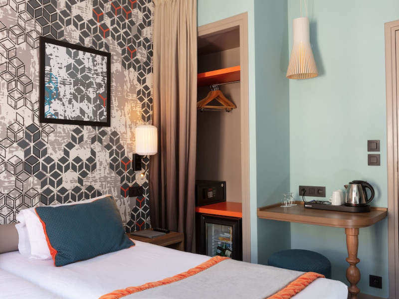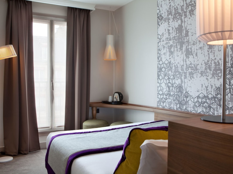 Hotel Des Nations Saint Germain is centrally located in Paris's Latin Quarter, a 10-minute walk from the Panthéon and a 14-minute walk from Notre-Dame. The hotel offers 36 guestrooms, each featuring a minibar, flat-screen TV with satellite programming, and a private bathroom with shower, complimentary toiletries, and hairdryer. A safe and coffee/tea maker are also provided. Daily housekeeping is included. Amenities include complimentary Wi-Fi, concierge services, a business center, express check-in, and a buffet breakfast (fee applies). Nearby attractions include Jardin des Plantes (0.3 km), Seine (0.8 km), Île de la Cité (0.9 km), Sorbonne University (0.9 km), Île Saint-Louis (0.9 km), Luxembourg Gardens (1.4 km), and more. Place Monge Metro station is a 2-minute walk away. Paris Orly Airport (ORY) is 17.9 km away, and Paris Charles de Gaulle Airport (CDG) is 36.6 km away. The Hotel Des Nations Saint Germains is a Tourist hotel. The nightlife/restaurants are easily accessible by taxi or bus from the hotel.