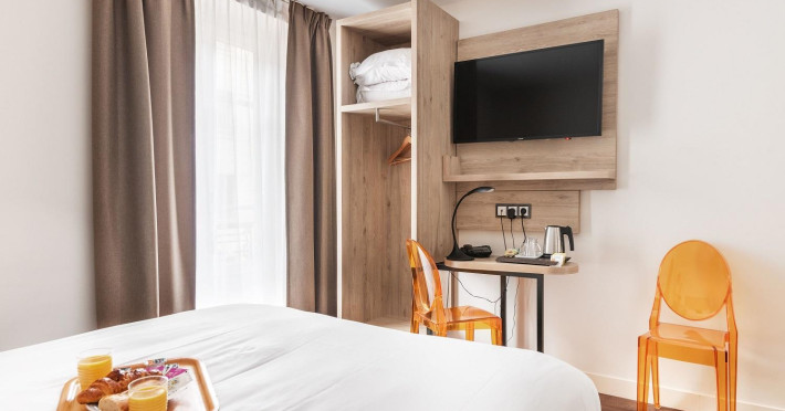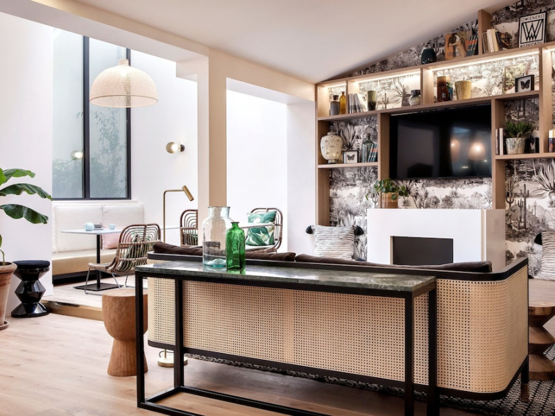 Located 100 meters from the town center and near the Champs-Élysées, Doisy Etoile - Orso Hotel offers convenient access to local attractions and public transportation. Renovated in 2017, this eco-certified hotel features 33 air-conditioned guestrooms with complimentary Wi-Fi, flat-screen televisions with satellite channels, minibars, and private bathrooms with shower/tub combinations, complimentary toiletries, and hair dryers. Guests can enjoy a buffet breakfast (for a fee), a snack bar/deli, and a bar/lounge. Amenities include a 24-hour front desk, multilingual staff, concierge services, dry cleaning/laundry services, and bicycle rentals. An airport shuttle is available for a surcharge. The hotel is non-smoking and provides services such as room service, luggage storage, and ticket assistance. Rue du Faubourg Saint-Honore is a 5-minute walk away, while the Arc de Triomphe is 1 km away. The Hotel Doisy - Orso Hotels is a hotel.