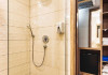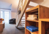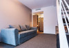Apartamentul family este de asemenea dispus pe doua niveluri: la parter living cu canapea extensibila si la etaj doua camere cu pat matrimonial. Exista o singura baie situata la parter.