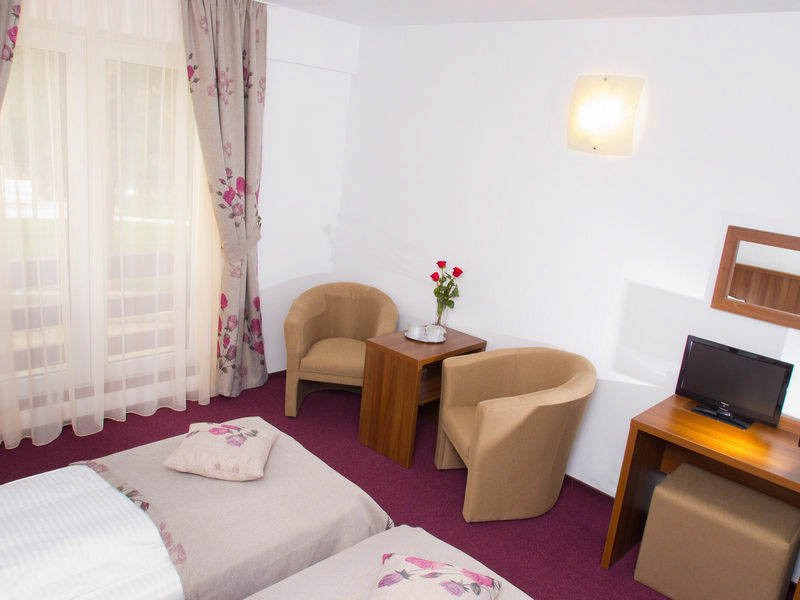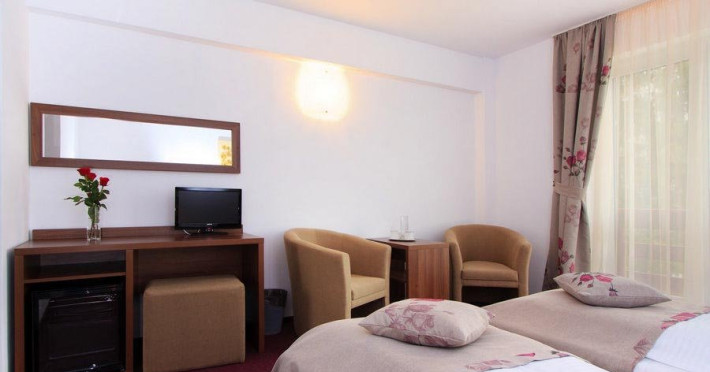 Hotelul dispune de restaurant, centru SPA, piscina exterioara (in sezon estival), baza de tratament, spatiu de joaca exterior pentru copii, parcare.