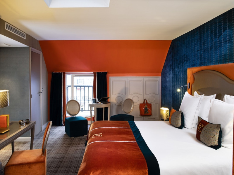 Located in central Paris near Grands Boulevards and Place de l’Opéra, Hôtel Edouard 7 Paris Opéra is an eco-certified hotel offering 69 air-conditioned rooms. Each room features complimentary wireless internet access, a flat-screen television with satellite programming, a minibar, a private bathroom with a bathtub or shower, complimentary toiletries, a hairdryer, a safe, a desk, and a phone with free local calls. Guests can enjoy French cuisine at La Cuisine de l’E7 restaurant, which offers organic and seasonal menus, or take advantage of 24-hour room service. A buffet breakfast is available for a surcharge. The hotel also features a bar/lounge, a fitness center, concierge services, a business center, limo/town car service, complimentary newspapers in the lobby, babysitting (surcharge), a banquet hall, currency exchange, luggage storage, laundry and dry cleaning services, and ticket and tour assistance. Shuttle service is available for a surcharge. The hotel provides conference space, meeting rooms and accessible parking. This is a non-smoking property with designated smoking areas. Additional amenities include massage, salon, and sauna services.