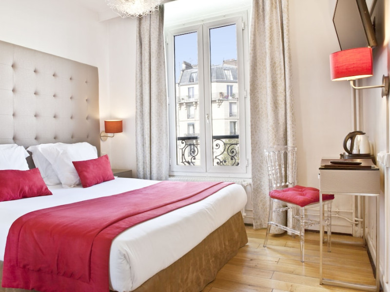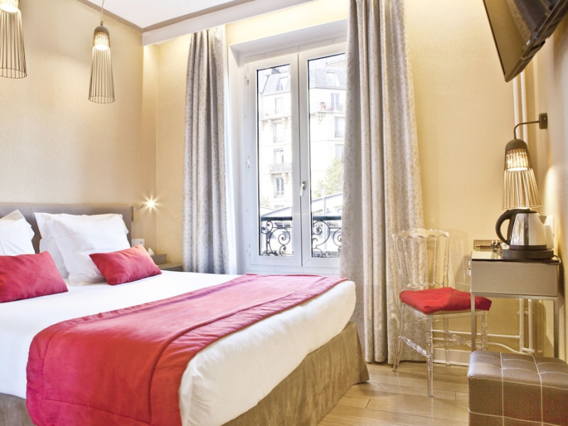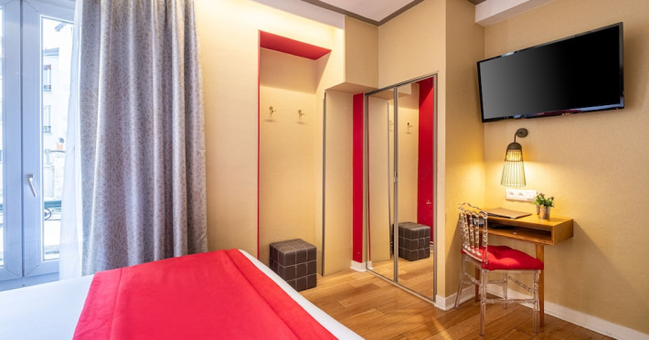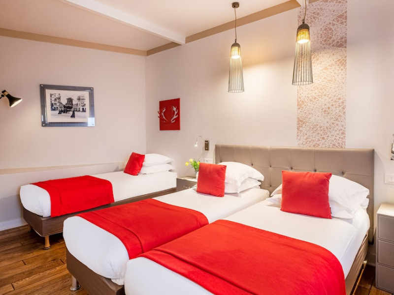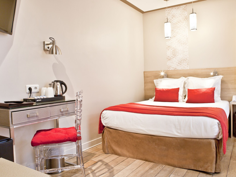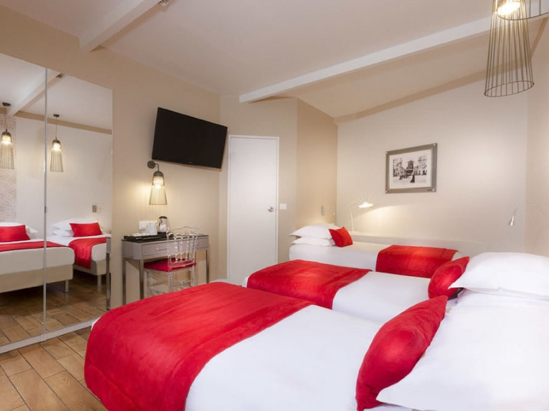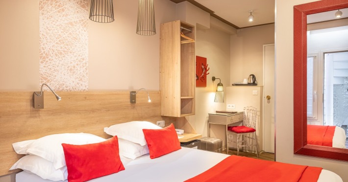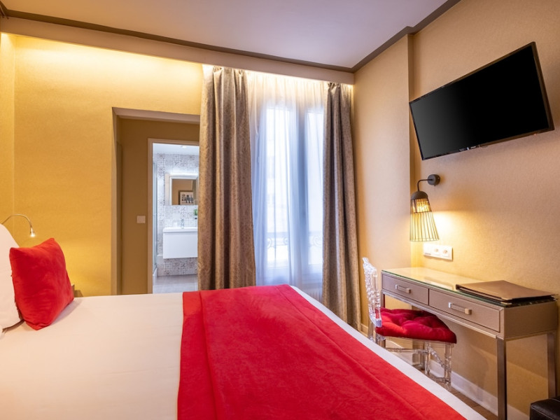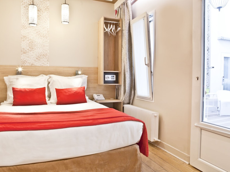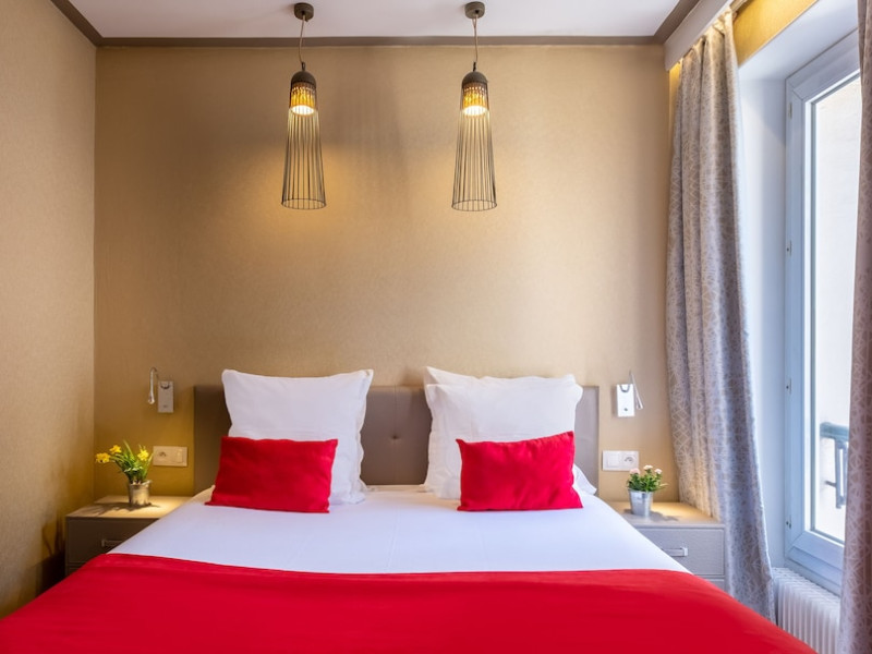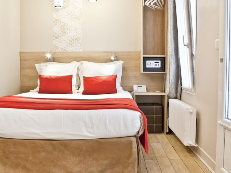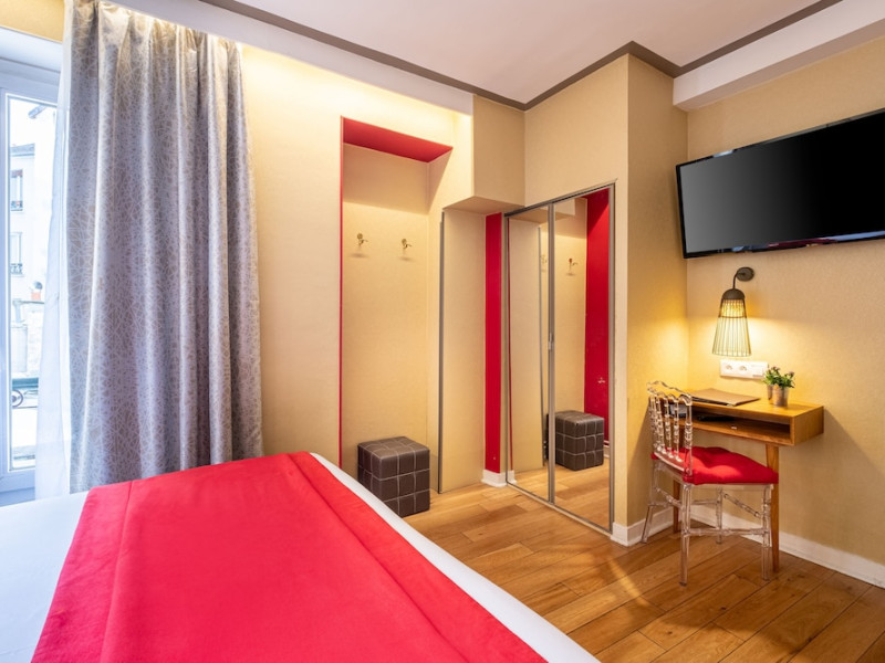 This non-smoking hotel comprises 33 air-conditioned rooms spread over 5 floors. Some rooms feature a brand new decor with modern furniture, parquet flooring, and comfortable indirect lighting. All rooms boast large double beds with top quality mattresses and duvets. Each room is equipped with a flat-screen television, telephone, desk, safe, and complimentary wireless internet access. Private bathrooms include a shower (some with bathtubs), hairdryer, and complimentary toiletries. Select rooms also offer a mini-bar.