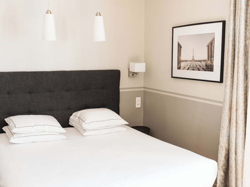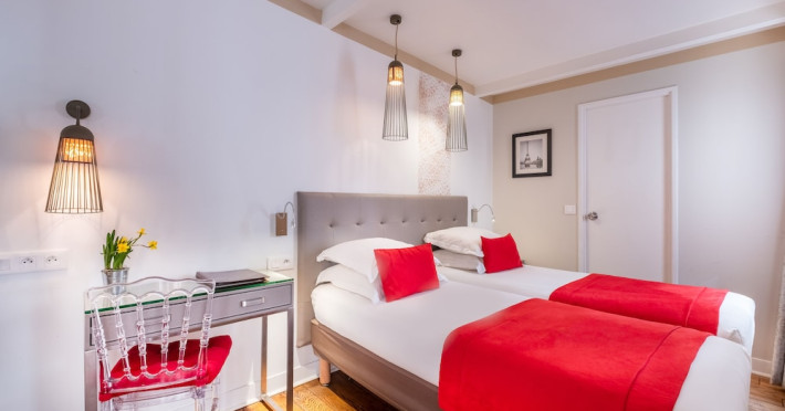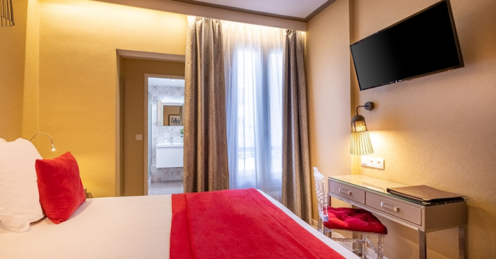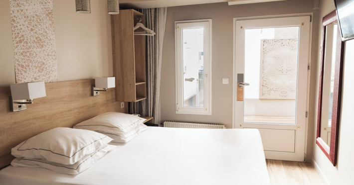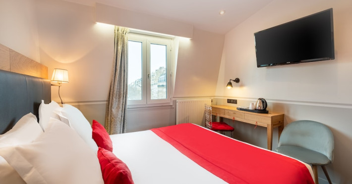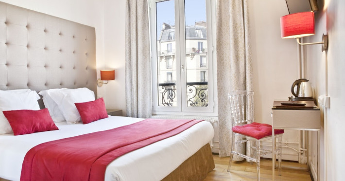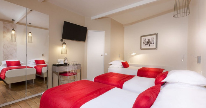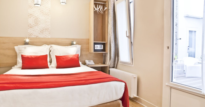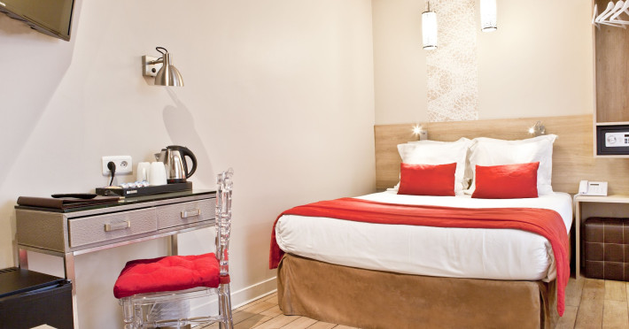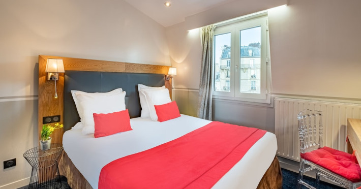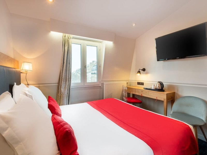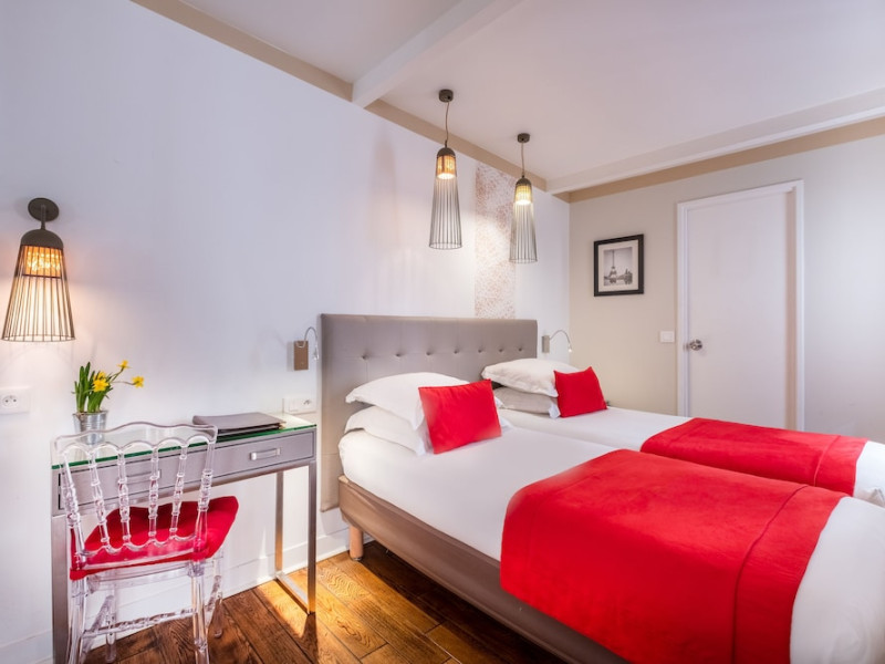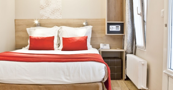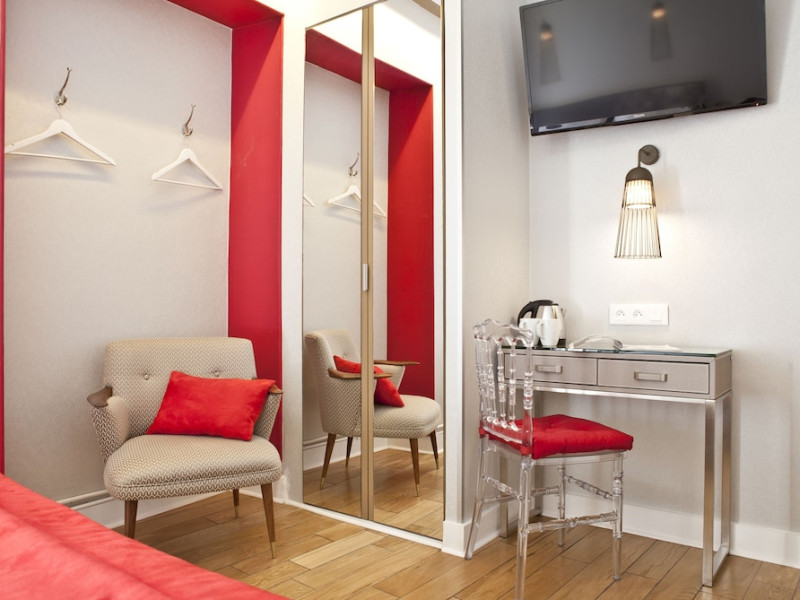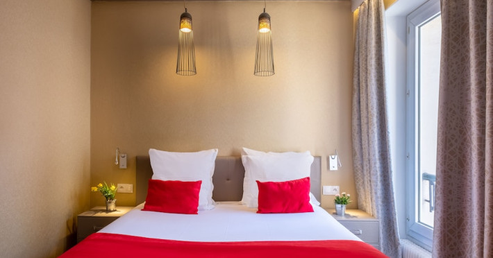 This non-smoking hotel comprises 33 air-conditioned rooms spread over 5 floors. Some rooms feature a brand new decor with modern furniture, parquet flooring, and comfortable indirect lighting. All rooms boast large double beds with top quality mattresses and duvets. Each room is equipped with a flat-screen television, telephone, desk, safe, and complimentary wireless internet access. Private bathrooms include a shower (some with bathtubs), hairdryer, and complimentary toiletries. Select rooms also offer a mini-bar.
