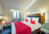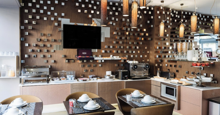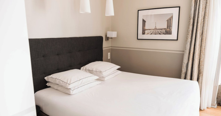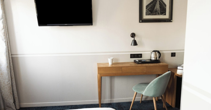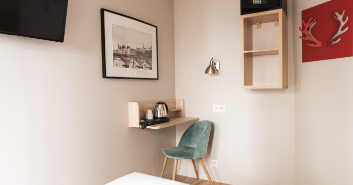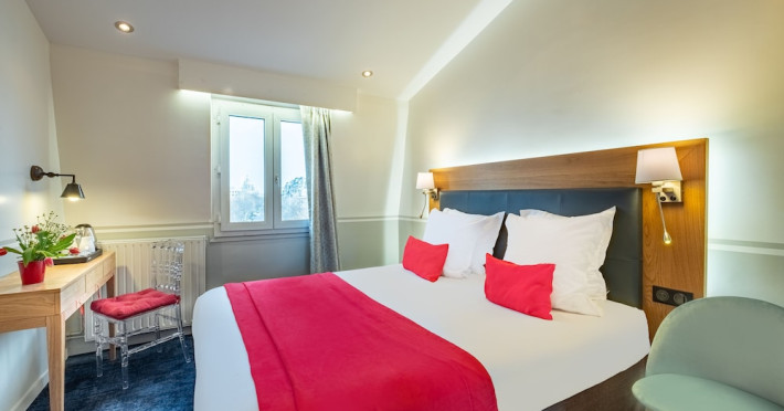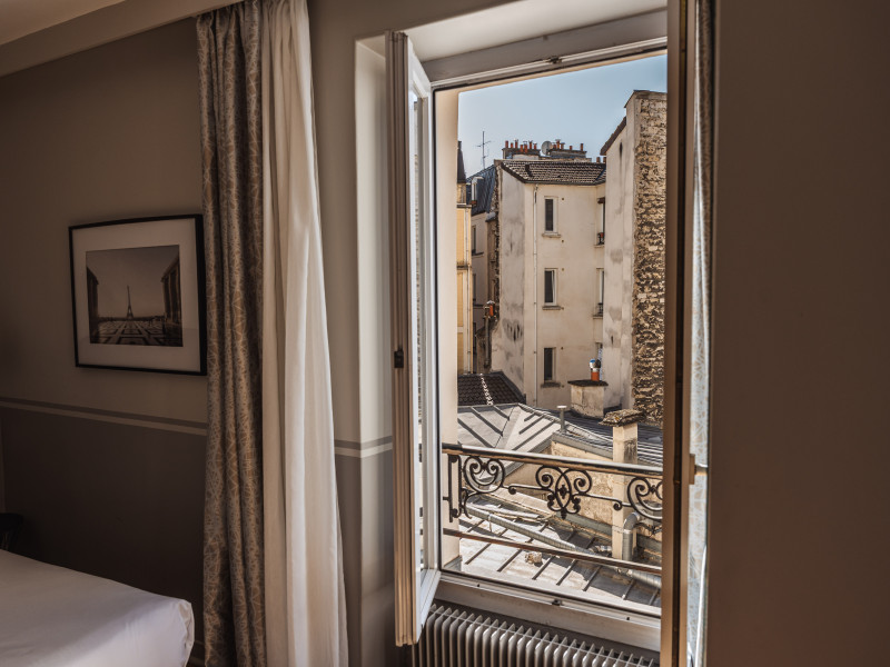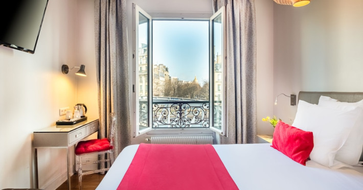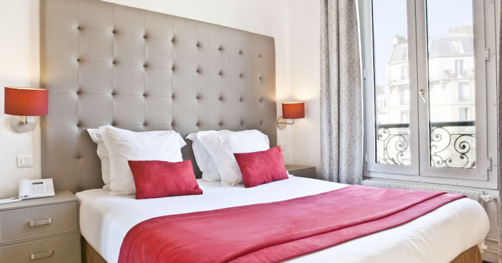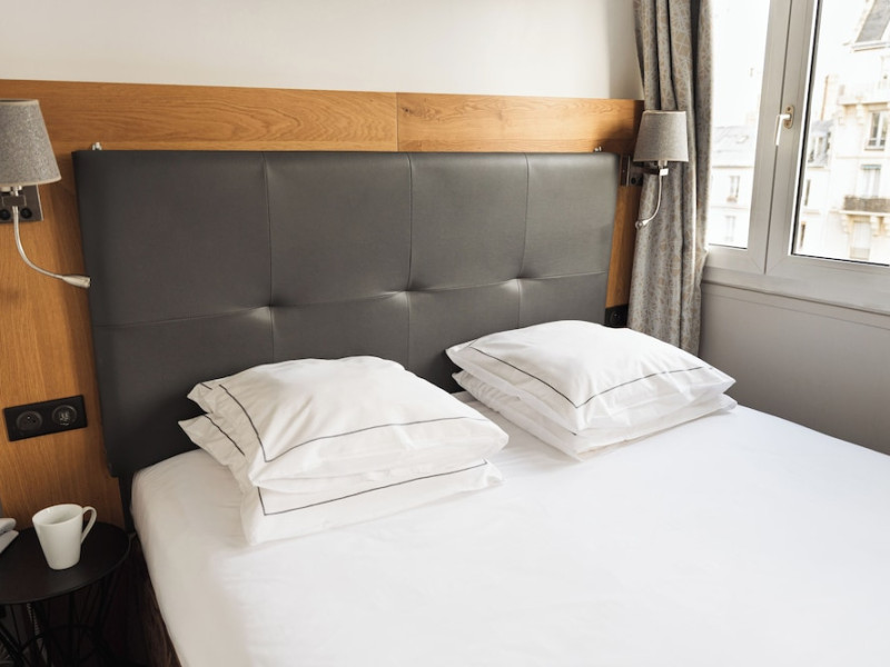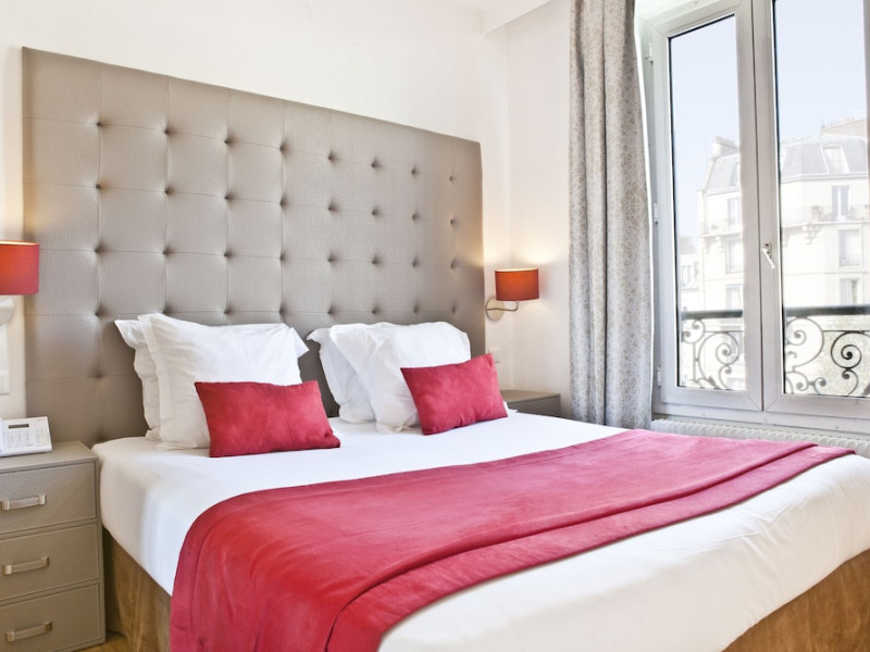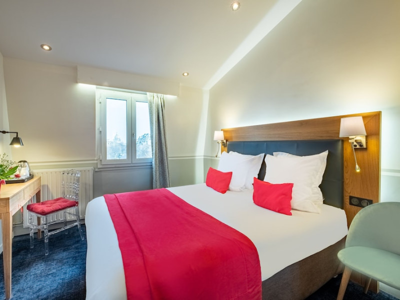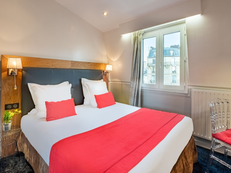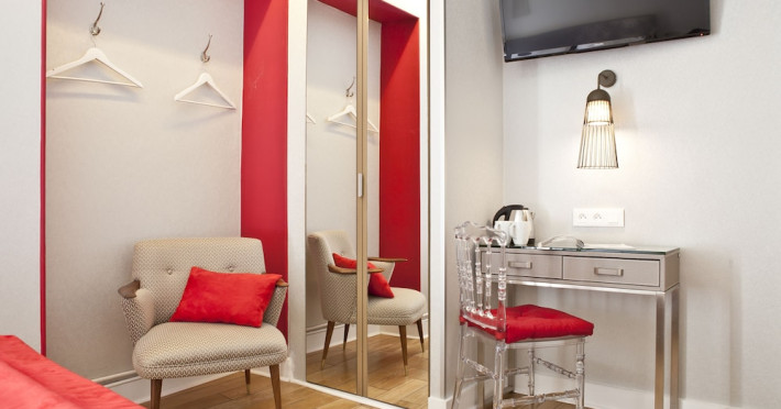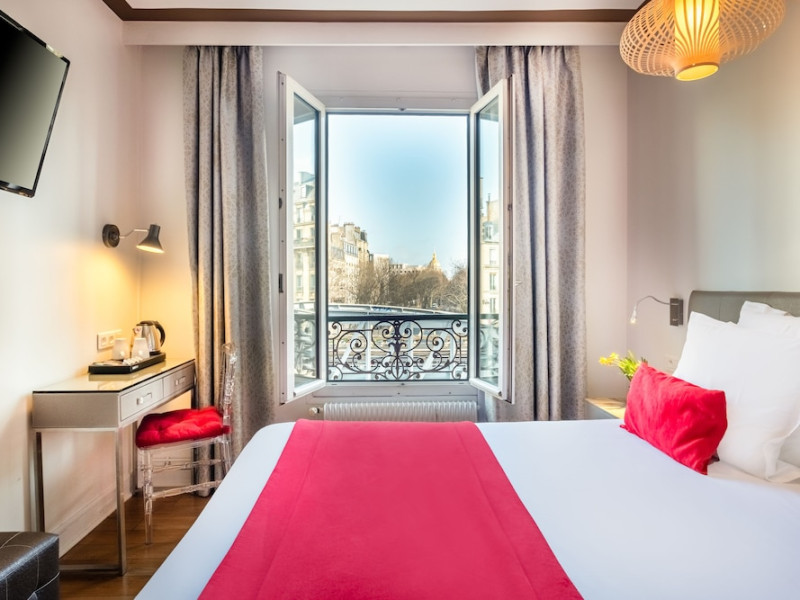 This non-smoking hotel comprises 33 air-conditioned rooms spread over 5 floors. Some rooms feature a brand new decor with modern furniture, parquet flooring, and comfortable indirect lighting. All rooms boast large double beds with top quality mattresses and duvets. Each room is equipped with a flat-screen television, telephone, desk, safe, and complimentary wireless internet access. Private bathrooms include a shower (some with bathtubs), hairdryer, and complimentary toiletries. Select rooms also offer a mini-bar.