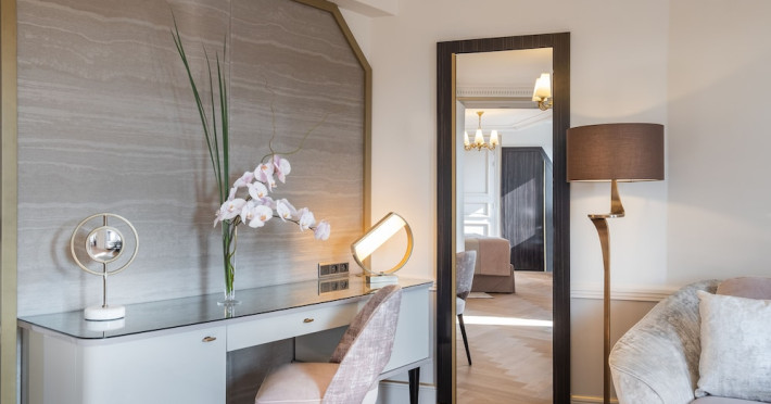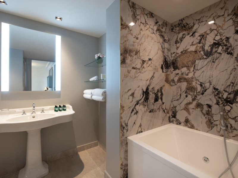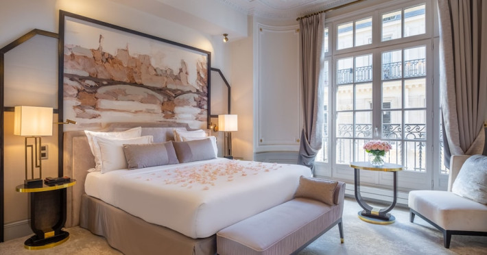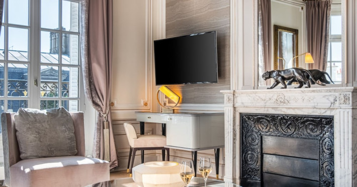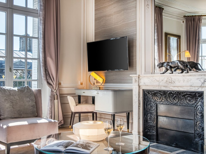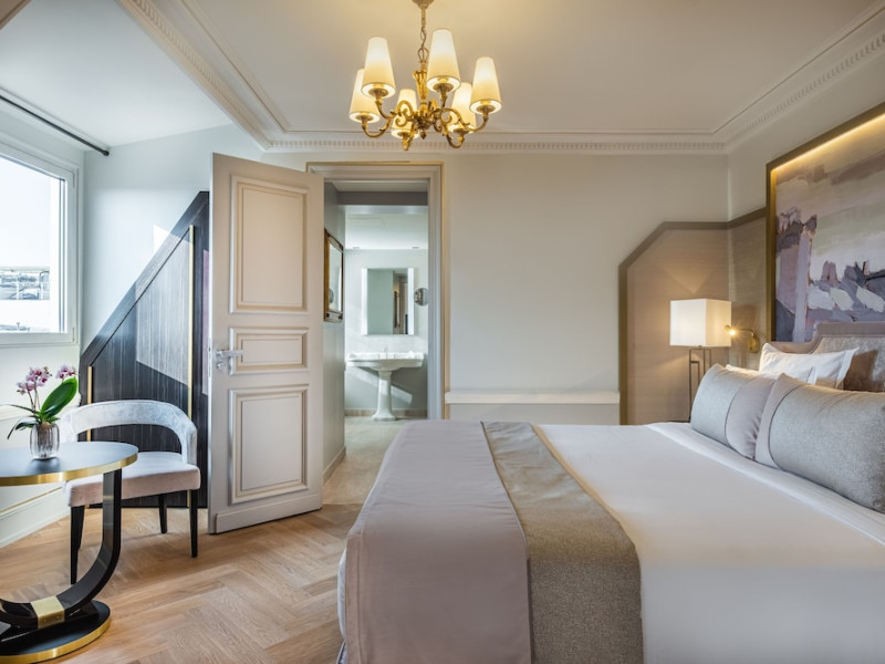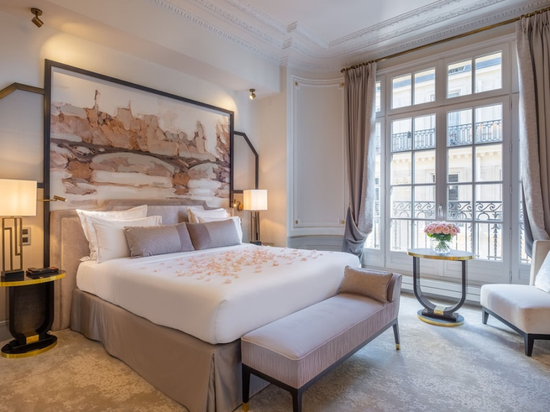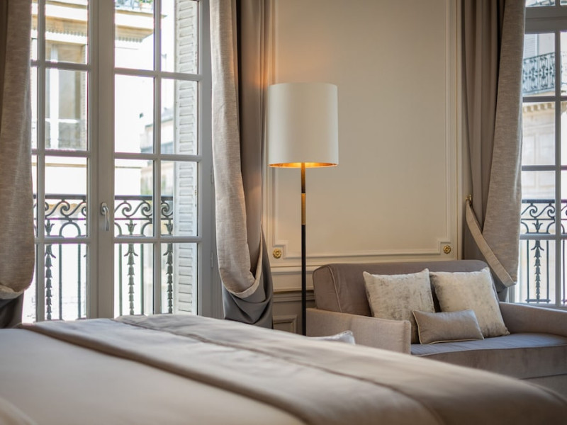 Hôtel Elysia by Inwood Hotels, a luxury hotel in a Haussmannian-style mansion, is centrally located in Paris' Champs-Élysées district, steps from Rue du Faubourg Saint-Honore and a 6-minute walk from the Champs-Élysées. The hotel offers 39 air-conditioned guestrooms with high ceilings, stylish furnishings, and soundproofing. Most rooms feature a spa bath and marble fireplace; all include a flat-screen TV and Malongo coffee machine. Private bathrooms have an art-deco design. Amenities include complimentary wired and wireless internet access, a 24-hour room service, daily housekeeping, and a concierge service. The hotel features a restaurant (Le Bayadère) serving French cuisine, a bar/lounge, a spa with a hammam, sauna, and gym (Technogym equipment), and a library. A buffet breakfast is available daily (fee applies). Valet parking and self-parking (fee applies) are available, along with an airport shuttle (surcharge, 24 hours). Babysitting services are available for an additional fee. Pets are welcome (surcharge applies). Nearby attractions include the Arc de Triomphe (1 km), Grand Palais (1.1 km), and numerous other Parisian landmarks. The Georges V metro station (line 1) is approximately 200m away. The Hotel Elysia by Inwood Hotels is a Boutique, Business, Child Friendly, Design Trendy, Full Service, Health Resort, Honeymoon, Tourist hotel. The nightlife/restaurants are easily accessible by taxi or bus from the hotel.