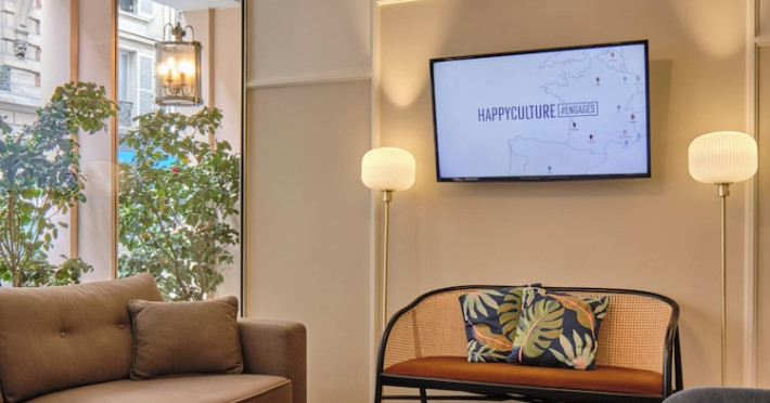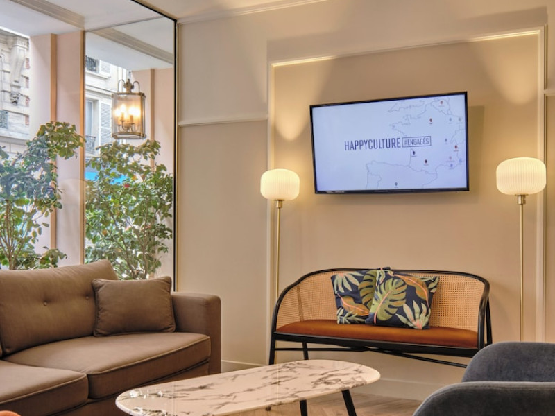 Located in Paris's 17th Arrondissement, Hôtel Etoile Saint Ferdinand by Happyculture is a 4-star hotel within walking distance of the Champs-Élysées and Arc de Triomphe. The air-conditioned rooms feature complimentary Wi-Fi, flat-screen televisions with satellite programming, safes, and coffee/tea makers. Bathrooms include complimentary toiletries and hair dryers. Guests can enjoy a drink at the bar/lounge and a daily buffet breakfast (for a fee). The hotel offers concierge services, a 24-hour front desk, luggage storage, and dry cleaning/laundry services. Self-parking is available onsite (subject to charges). The Hotel Etoile Saint Ferdinand by HappyCulture is a Tourist hotel. The nightlife/restaurants are easily accessible by taxi or bus from the hotel.