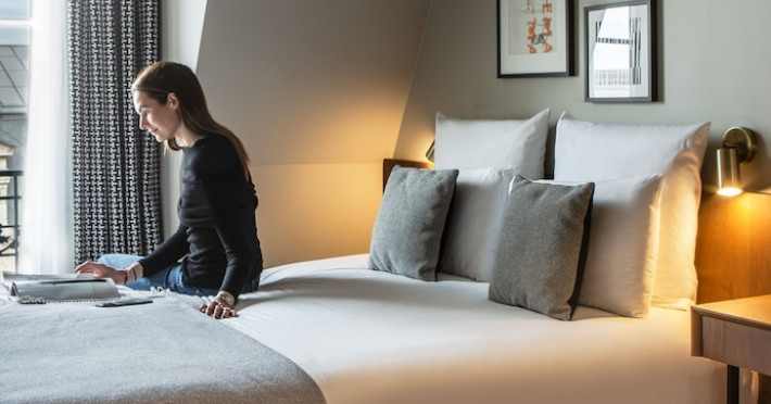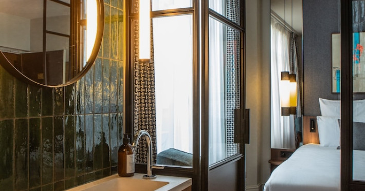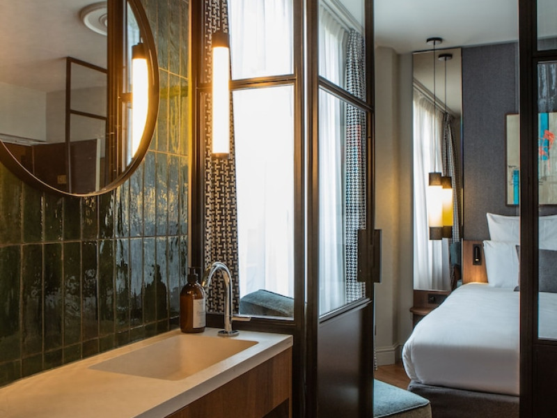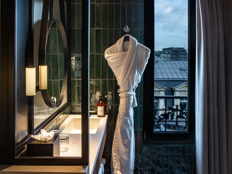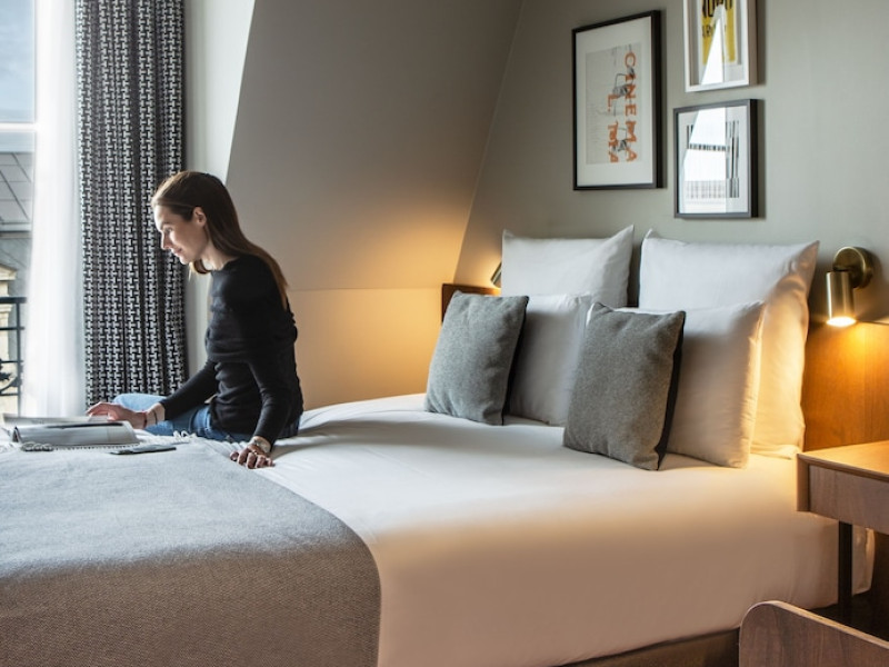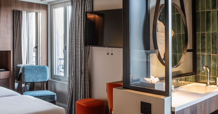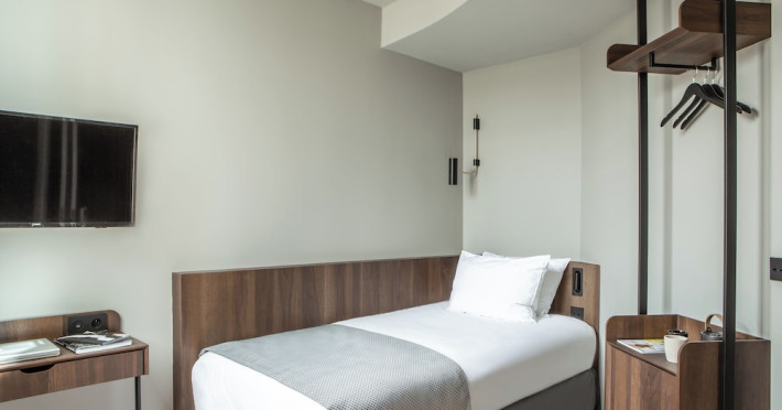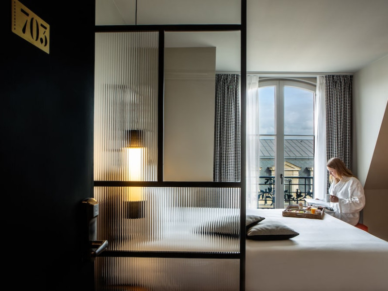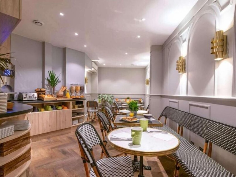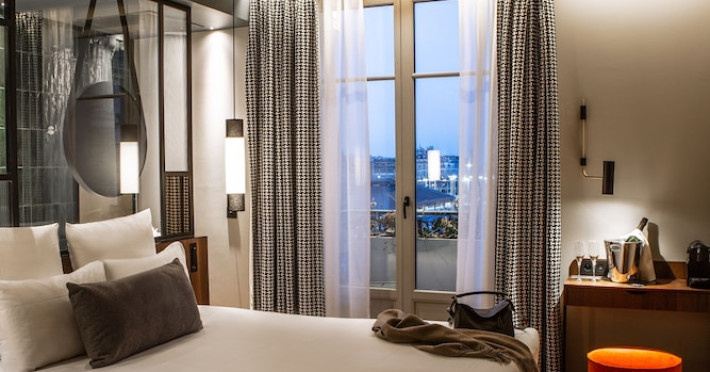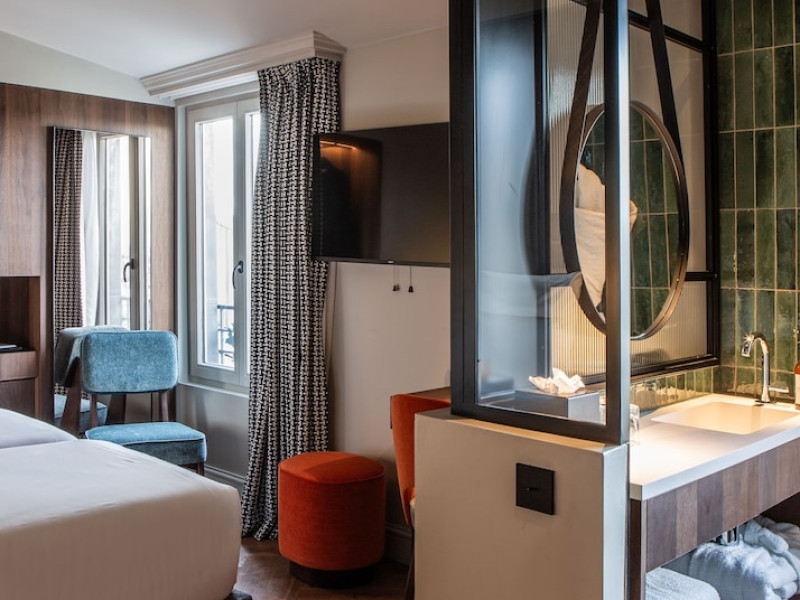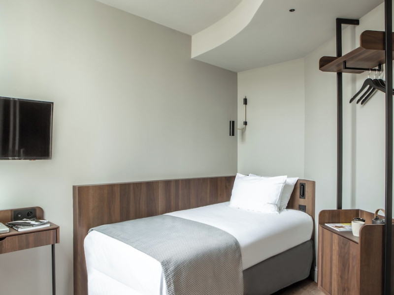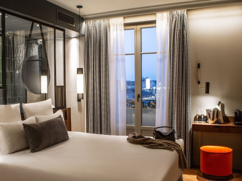 Hotel Flanelles is ideally located opposite Gare du Nord train station, a 5-minute walk from Gare de l'Est, and 30 minutes from Charles de Gaulle Airport (CDG). The hotel offers easy access to major Parisian attractions including department stores, the opera house, Louvre, Champs-Élysées, Eiffel Tower, Montmartre, Stade de France, Le Bourget, and Disneyland. All 44 air-conditioned rooms include espresso makers, LCD TVs, complimentary Wi-Fi, cable programming, private bathrooms with showers, complimentary toiletries, hair dryers, safes, and complimentary bottled water. A 24-hour front desk, luggage storage, and lockers are available. Buffet breakfast is available daily from 6:00 AM to 10:00 AM (fee applies). The hotel has received its official star rating from ATOUT France. Rooms also include phones with free local calls. Distances to nearby attractions include: Canal Saint-Martin (1.1 km), Grands Boulevards (1.2 km), Place de la République (1.4 km), Grand Rex Cinema (1.5 km), Sacré-Cœur Basilica (1.6 km), Grevin Museum (1.6 km), Boulevard Haussmann (1.7 km), Moulin Rouge (2 km), La Machine du Moulin Rouge (2 km), Galeries Lafayette (2 km), Les Halles (2.1 km), Theatre Mogador (2.1 km), Centre Pompidou (2.3 km), Parc des Buttes Chaumont (2.3 km), Palais Garnier (2.3 km). The hotel is also within a 10-minute drive of Palais Garnier and Sacré-Cœur Basilica, 2.2 mi (3.5 km) from Notre-Dame, and 2.4 mi (3.9 km) from Champs-Élysées. Paris Orly Airport (ORY) is 20.5 km away. The Hotel Flanelles Paris is a hotel.