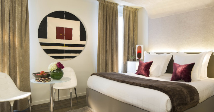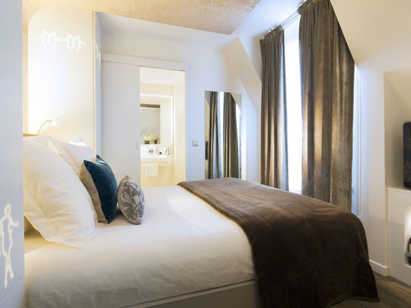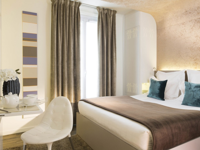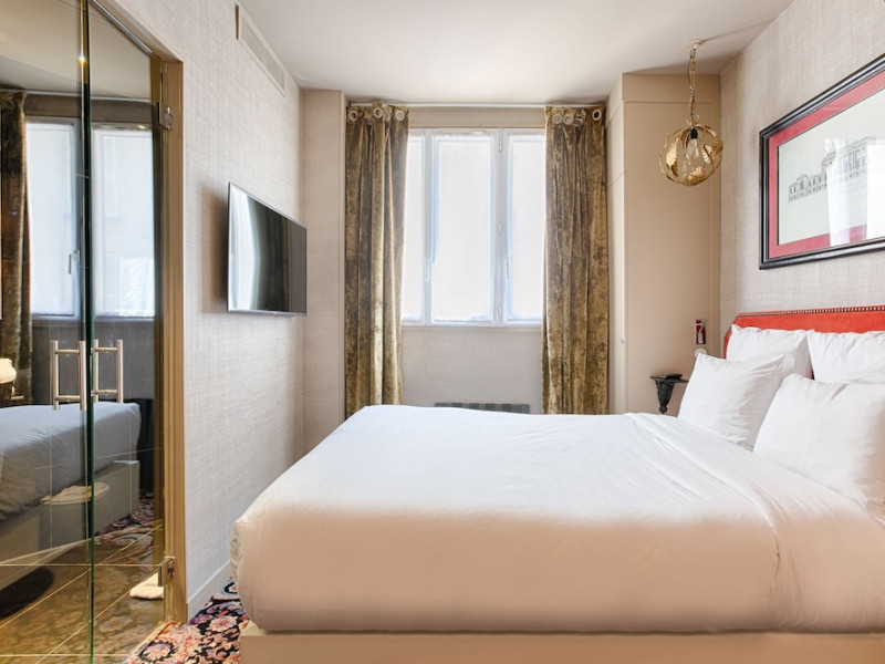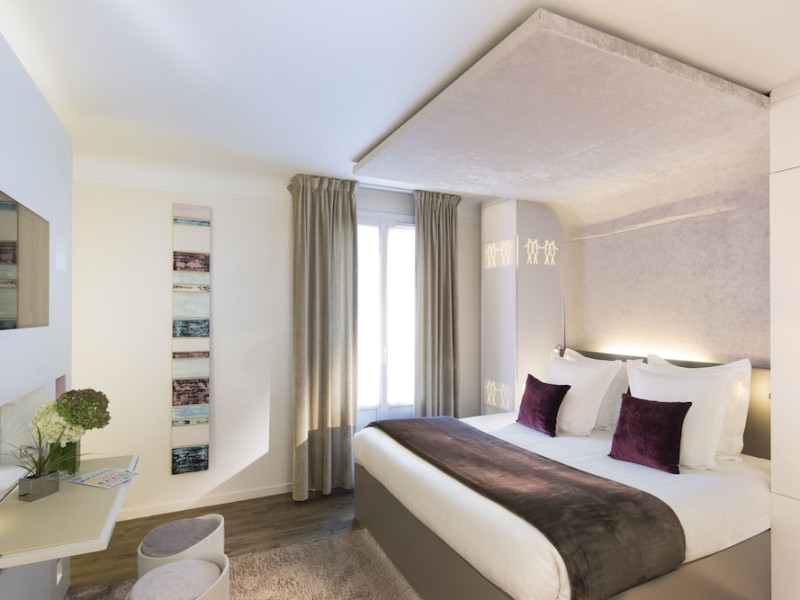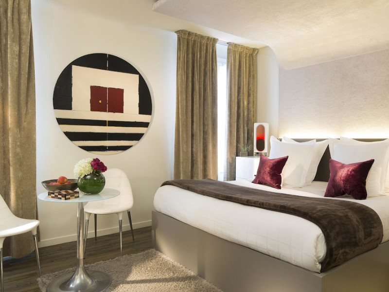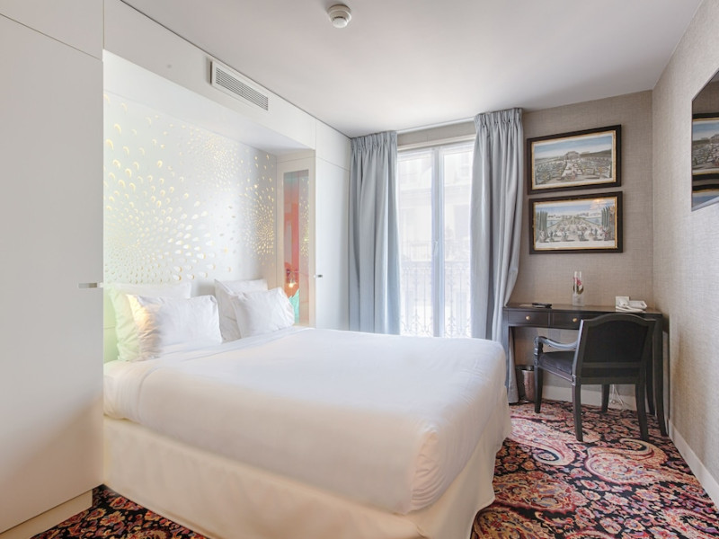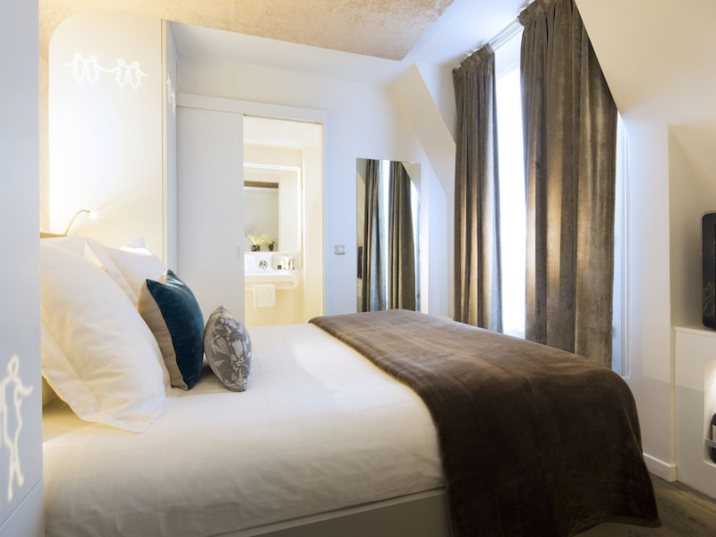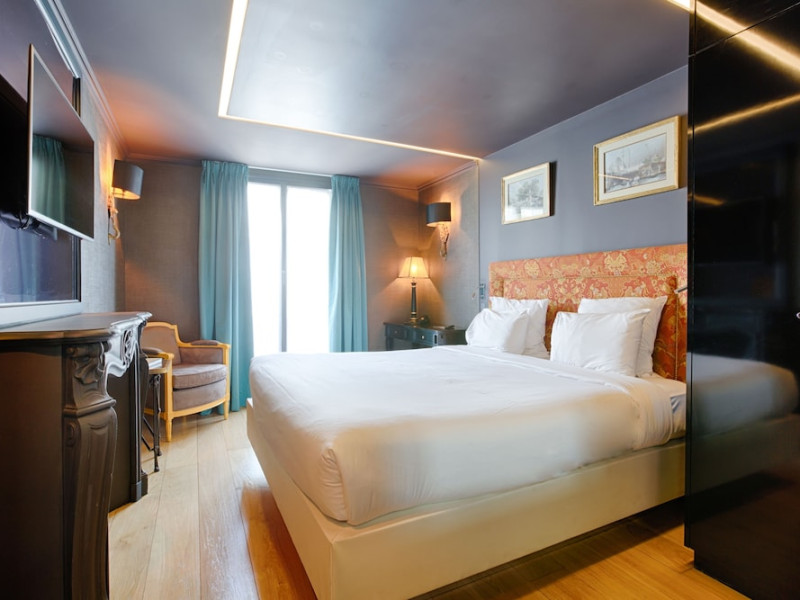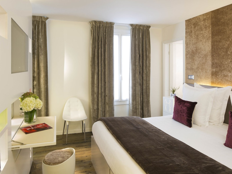 Hôtel Gabriel Paris, with its Art Deco facade, offers an intimate and elegant boutique hotel experience in central Paris, near Place de la République. Designed by architect Axel Schoenert, the hotel features contemporary decor and a Zen ambiance. The hotel offers 40 tranquil rooms across six floors. Rooms are equipped with free Wi-Fi, flat-screen TVs with satellite programming, minibars, espresso makers, and safes. Memory foam beds feature Egyptian cotton sheets. Bathrooms include designer toiletries and hair dryers. Select rooms offer the NightCove sleep enhancement system. Guests can enjoy a complimentary continental breakfast, a bar/lounge, room service (during limited hours), concierge services, and a terrace. Additional amenities include a 24-hour front desk, multilingual staff, dry cleaning/laundry services, luggage storage, and a television in a common area. Airport transfers and taxi services can be arranged. The République Metro Station is nearby, providing access to Opéra Garnier. The Hotel Gabriel Paris is a Tourist hotel. The nightlife/restaurants are easily accessible by taxi or bus from the hotel.