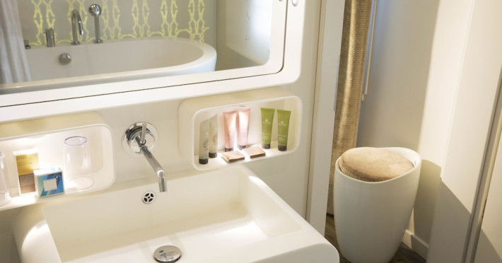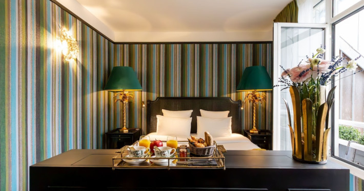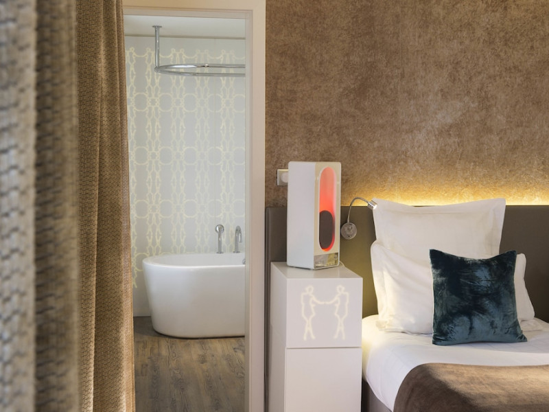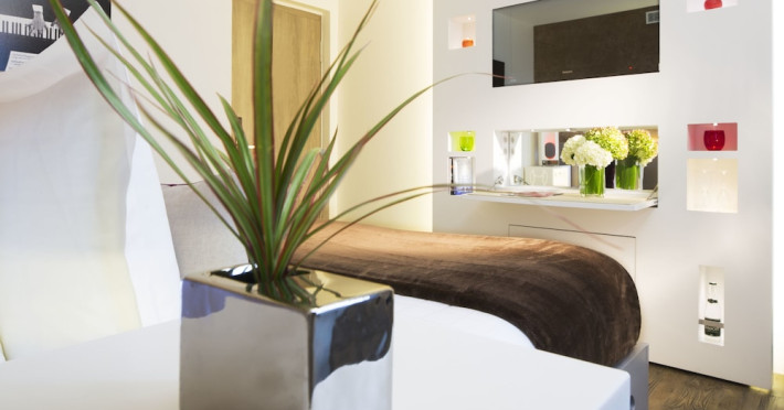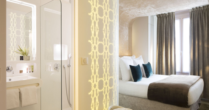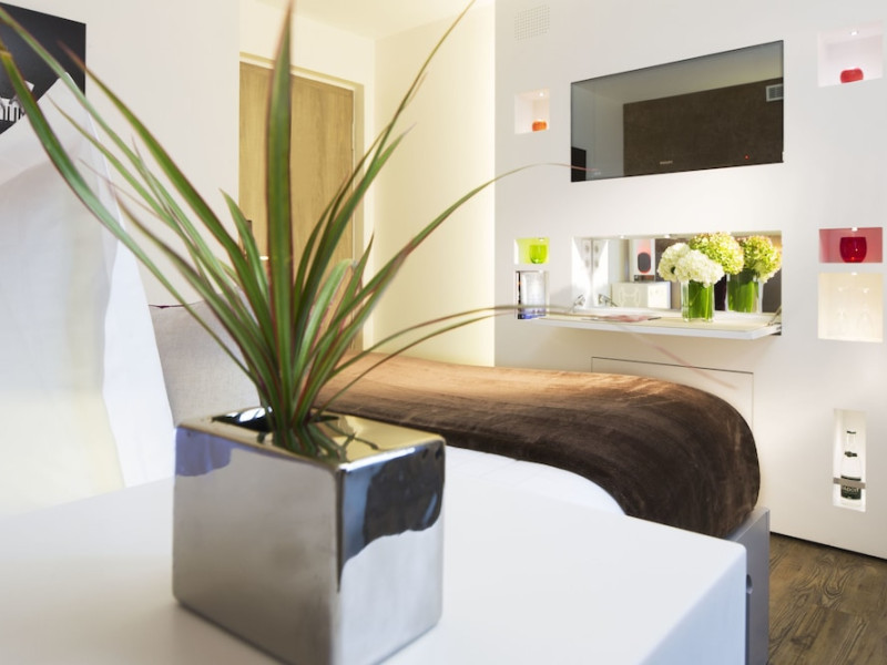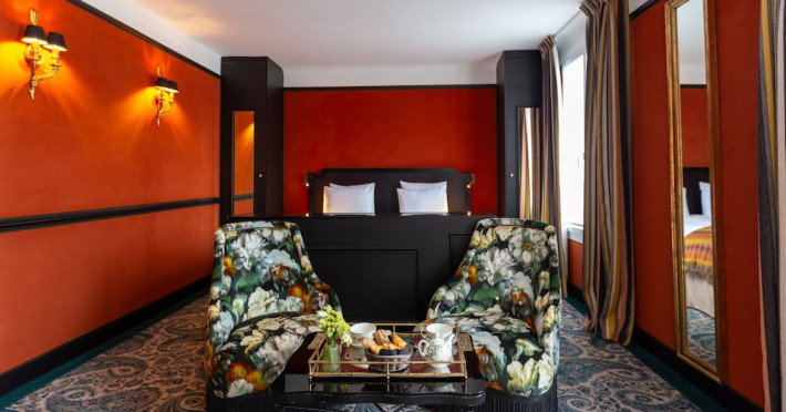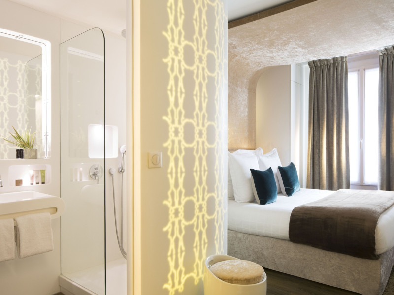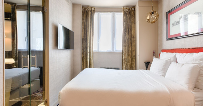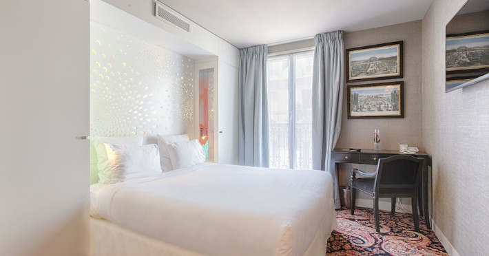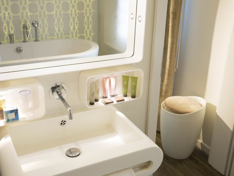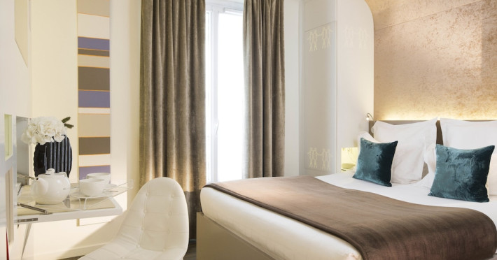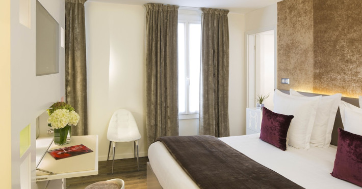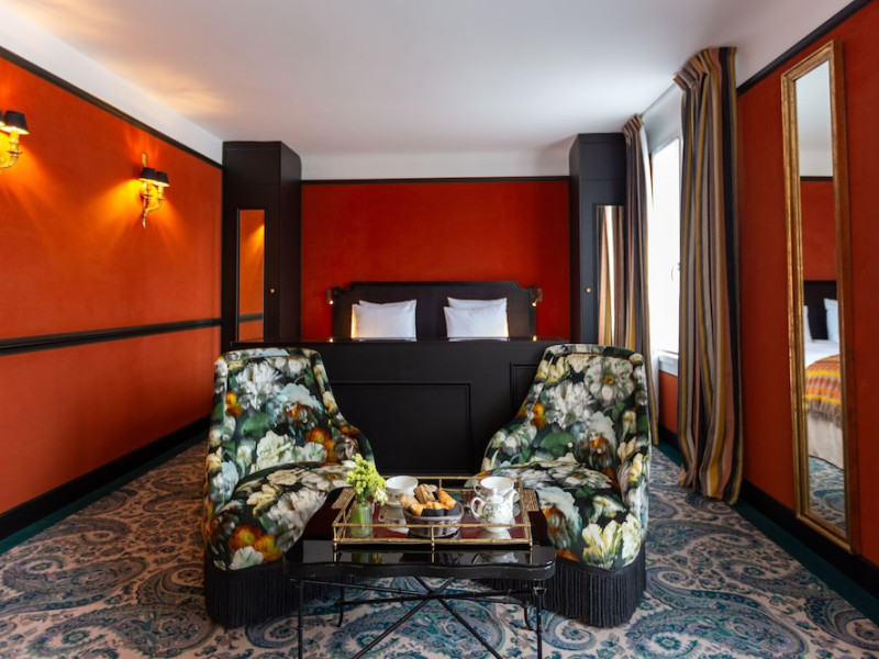 Hôtel Gabriel Paris, with its Art Deco facade, offers an intimate and elegant boutique hotel experience in central Paris, near Place de la République. Designed by architect Axel Schoenert, the hotel features contemporary decor and a Zen ambiance. The hotel offers 40 tranquil rooms across six floors. Rooms are equipped with free Wi-Fi, flat-screen TVs with satellite programming, minibars, espresso makers, and safes. Memory foam beds feature Egyptian cotton sheets. Bathrooms include designer toiletries and hair dryers. Select rooms offer the NightCove sleep enhancement system. Guests can enjoy a complimentary continental breakfast, a bar/lounge, room service (during limited hours), concierge services, and a terrace. Additional amenities include a 24-hour front desk, multilingual staff, dry cleaning/laundry services, luggage storage, and a television in a common area. Airport transfers and taxi services can be arranged. The République Metro Station is nearby, providing access to Opéra Garnier. The Hotel Gabriel Paris is a Tourist hotel. The nightlife/restaurants are easily accessible by taxi or bus from the hotel.