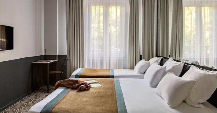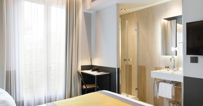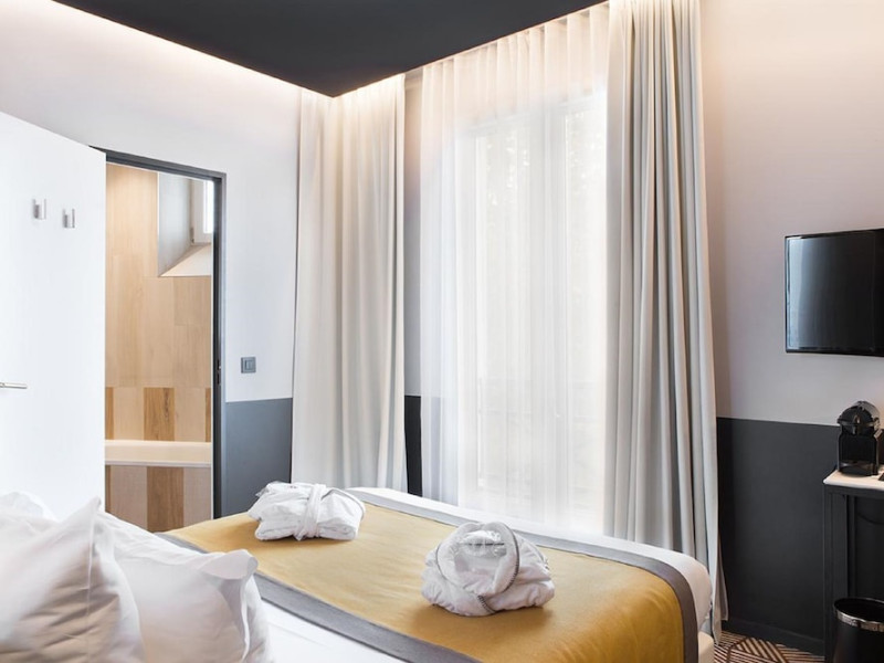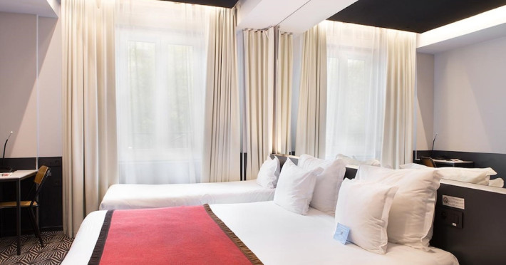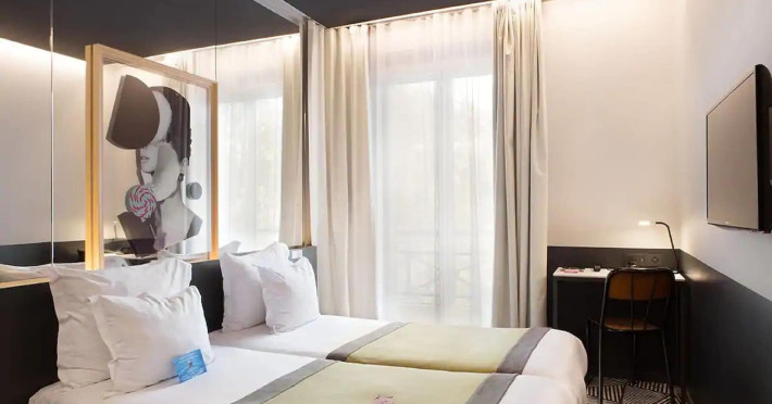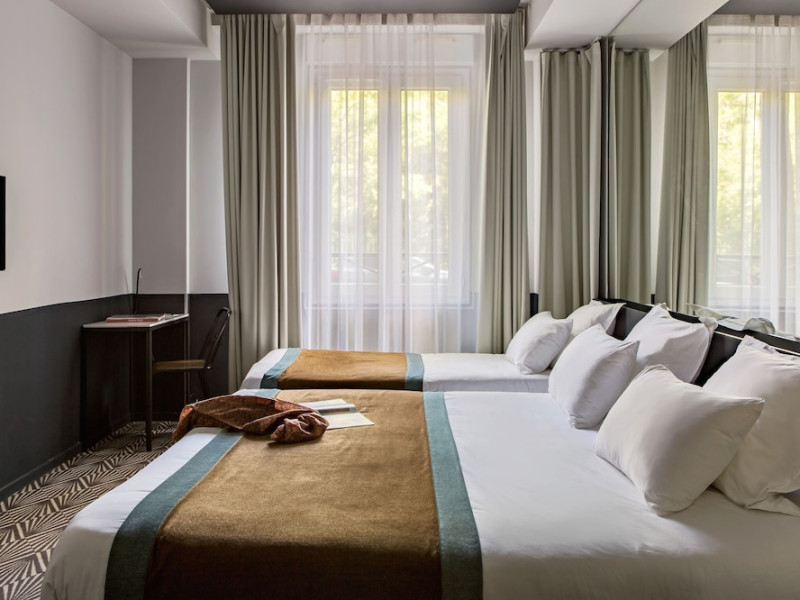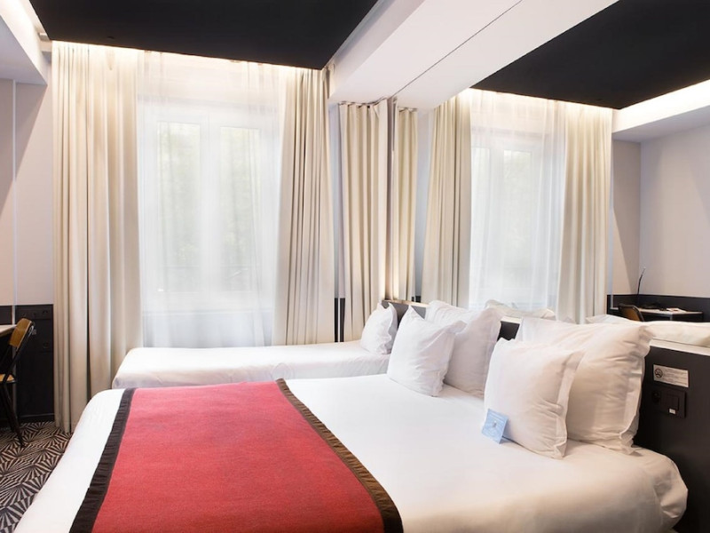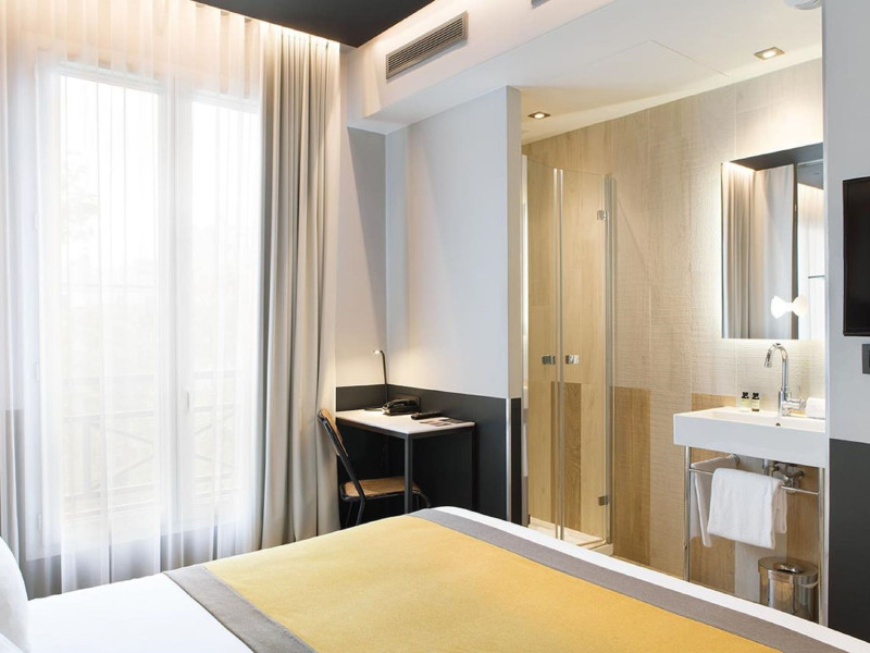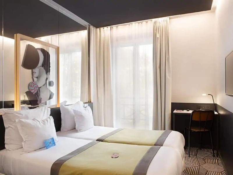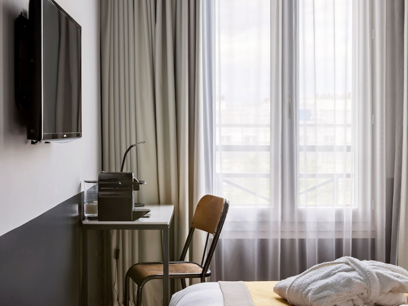 Located in Paris’ 17th arrondissement, Hôtel Gaston offers contemporary-style accommodation near the Wagram Metro station, providing easy access to attractions. The soundproofed and air-conditioned rooms feature a TV, personal safe, and a private bathroom with a bath or shower, and a hairdryer. Free high-speed WiFi is available throughout the hotel. Guests can enjoy room service and elevator access. A buffet or express breakfast is served daily for a fee. The 24-hour reception offers concierge service, express check-in/check-out, luggage storage, and safety deposit boxes. Additional amenities include a vending machine, gift shops/newsstands, babysitting (surcharge), ticket service, tours assistance, and laundry service. The hotel also offers an airport shuttle for an additional cost, and self-parking is available (surcharge). The corridors and lobby feature artistic decor by the Splendens Factory community. The Hotel Gaston is a Tourist hotel. The nightlife/restaurants are easily accessible by taxi or bus from the hotel.
