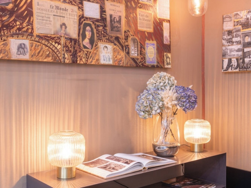 Hôtel George Sand Opéra Paris is a boutique hotel centrally located in Paris' 9th arrondissement, steps from Boulevard Haussmann and a short walk from Galeries Lafayette and Palais Garnier. The hotel offers 20 individually decorated guestrooms, each featuring a private bathroom with bathtub, complimentary toiletries, and hairdryer; a flat-screen TV with satellite programming; complimentary Wi-Fi; a minibar with complimentary items; and premium bedding. Amenities include complimentary wireless internet access, concierge services, complimentary newspapers in the lobby, a 24-hour front desk, multilingual staff, and room service (during limited hours). A buffet breakfast is available daily for a fee. The hotel is near several major Parisian attractions, including the Champs-Élysées, and is conveniently located near several metro lines and train stations, providing easy access to other parts of Paris and major airports. The hotel has received its official star rating from ATOUT France. The Hotel George Sand Opera Paris is a hotel.
