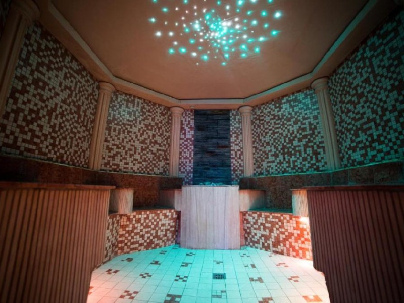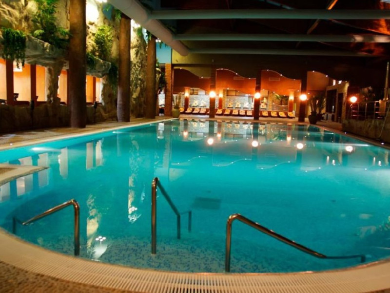 Exist o piscina mare incalzita, o piscina pentru copii, cazi cu hidromasaj si saune. De asemenea, oaspetii pot beneficia de o pestera salina si de o camera salina, ambele cu sare roz de Himalaya.