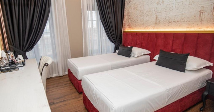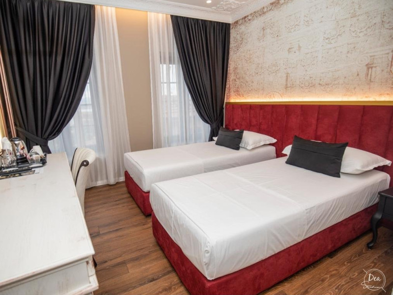 Localizare: Hotelul este situat in centrul frumosului oras Durres si este inconjurat de Piazza Veliera. La aproximativ 750 de metri se afla Amfiteatrul din Durres. Facilitati hotel: Hotelul pune la dispozitia clientilor receptie deschisa non-stop, schimb valutar, restaurant, parcare, bar si lounge comun. Dotari camere: Camerele ofera o vedere minunata spre mare si zidurile bizantine.Acestea sunt dotate cu TV cu ecran plat, aer conditionat. Site web: https://hotelkloest.com/